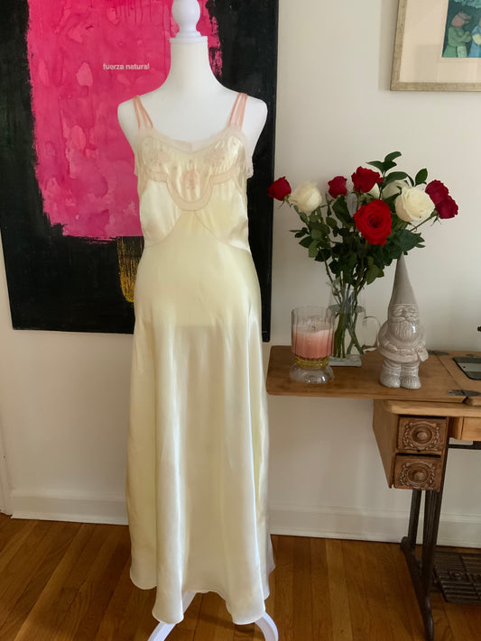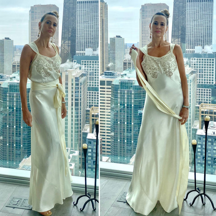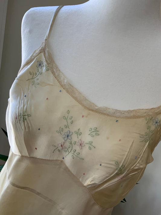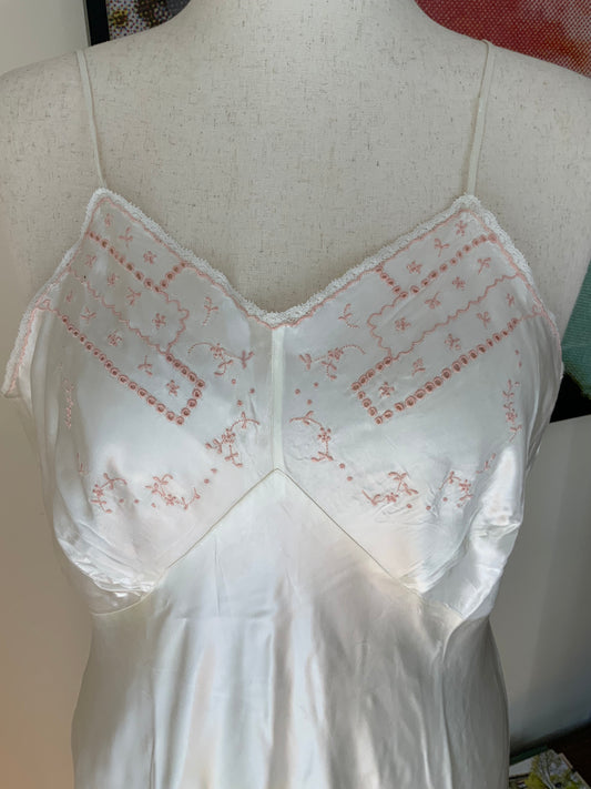 Silk Embroidered Ivory Nightgown | Bias Cut Vintage Lingerie - 40s - 40AO