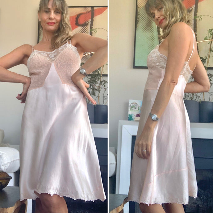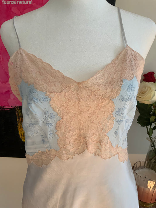 Silk Lace Slip Dress Grey - 40s - 40AH