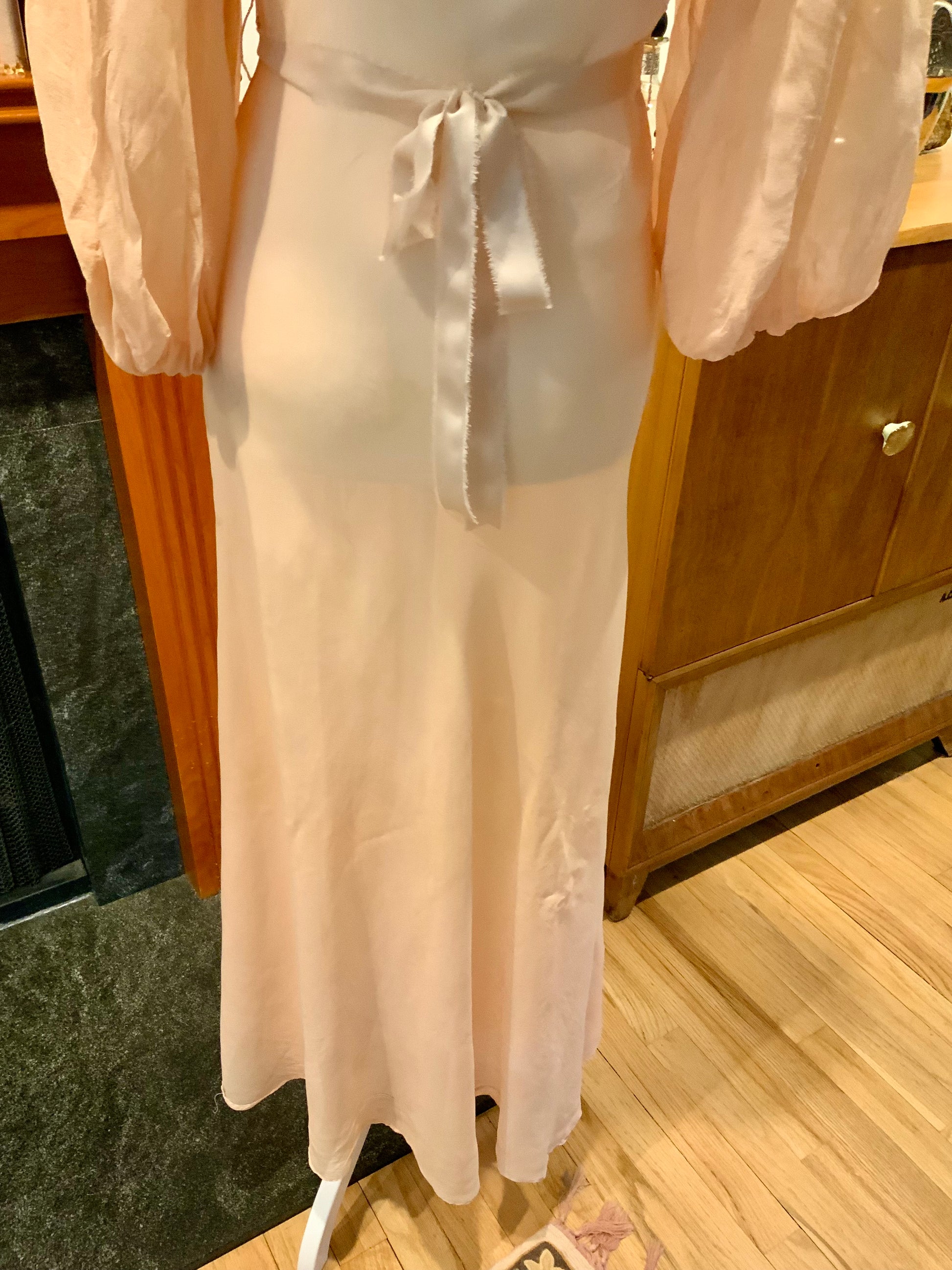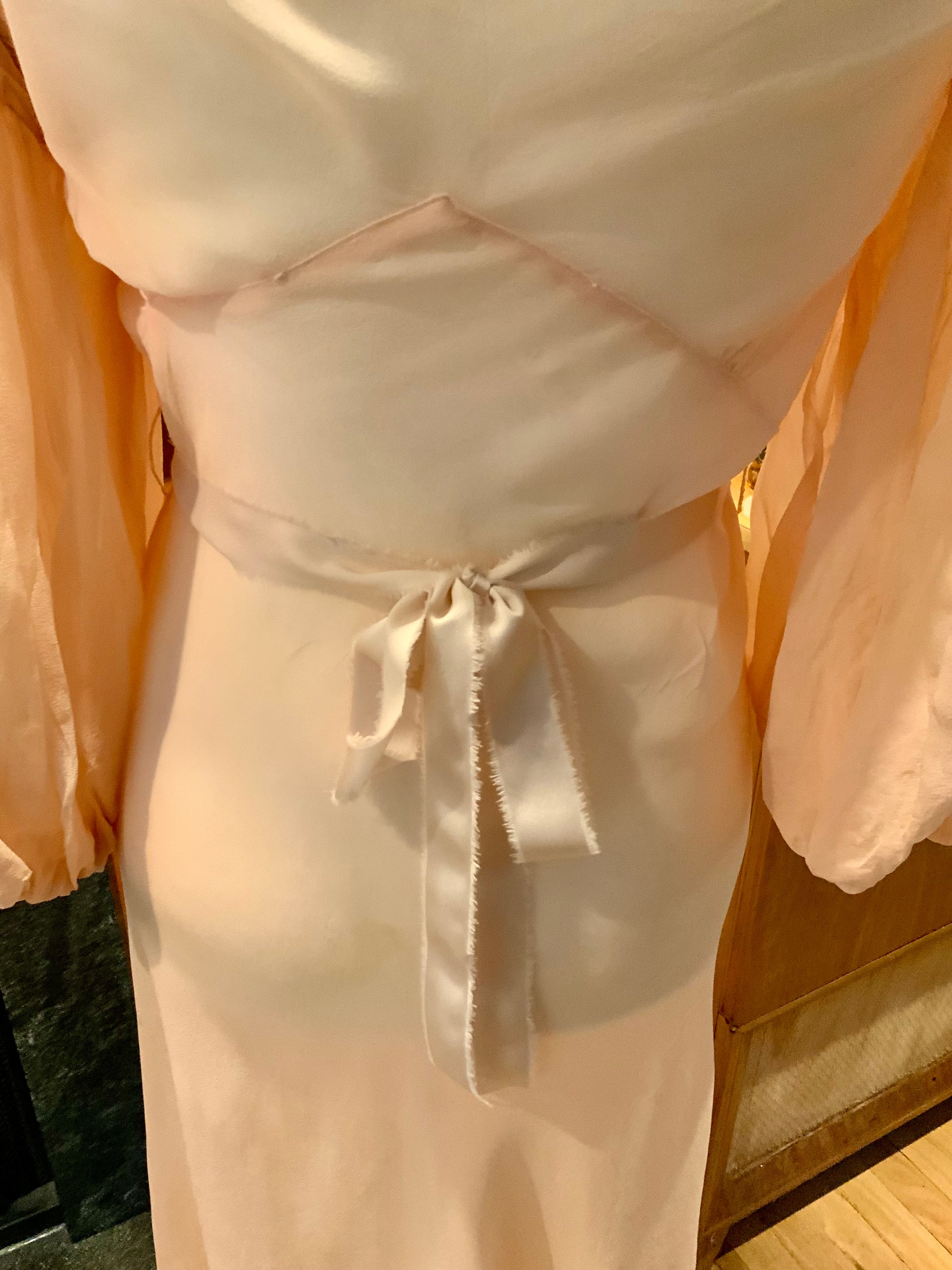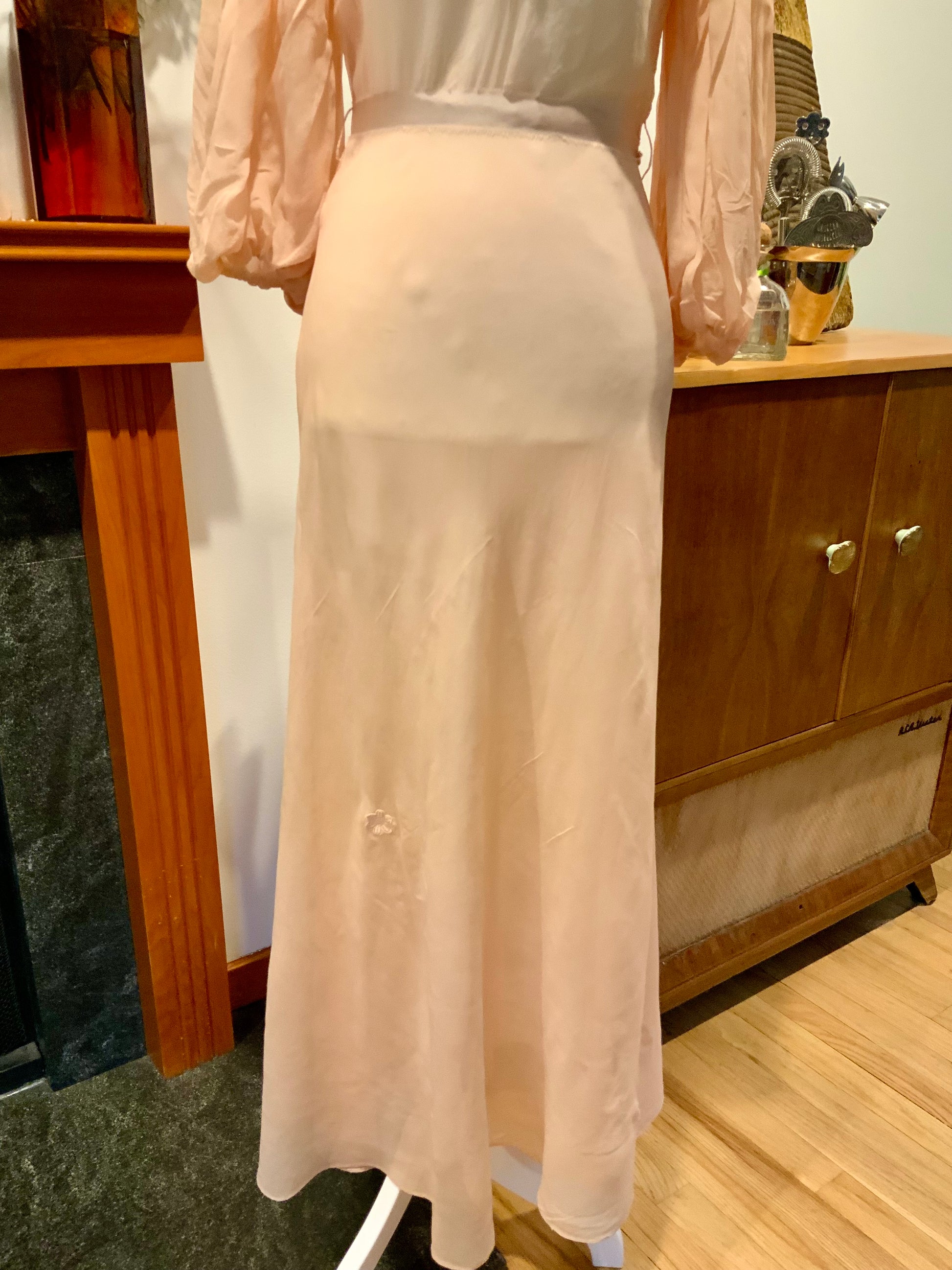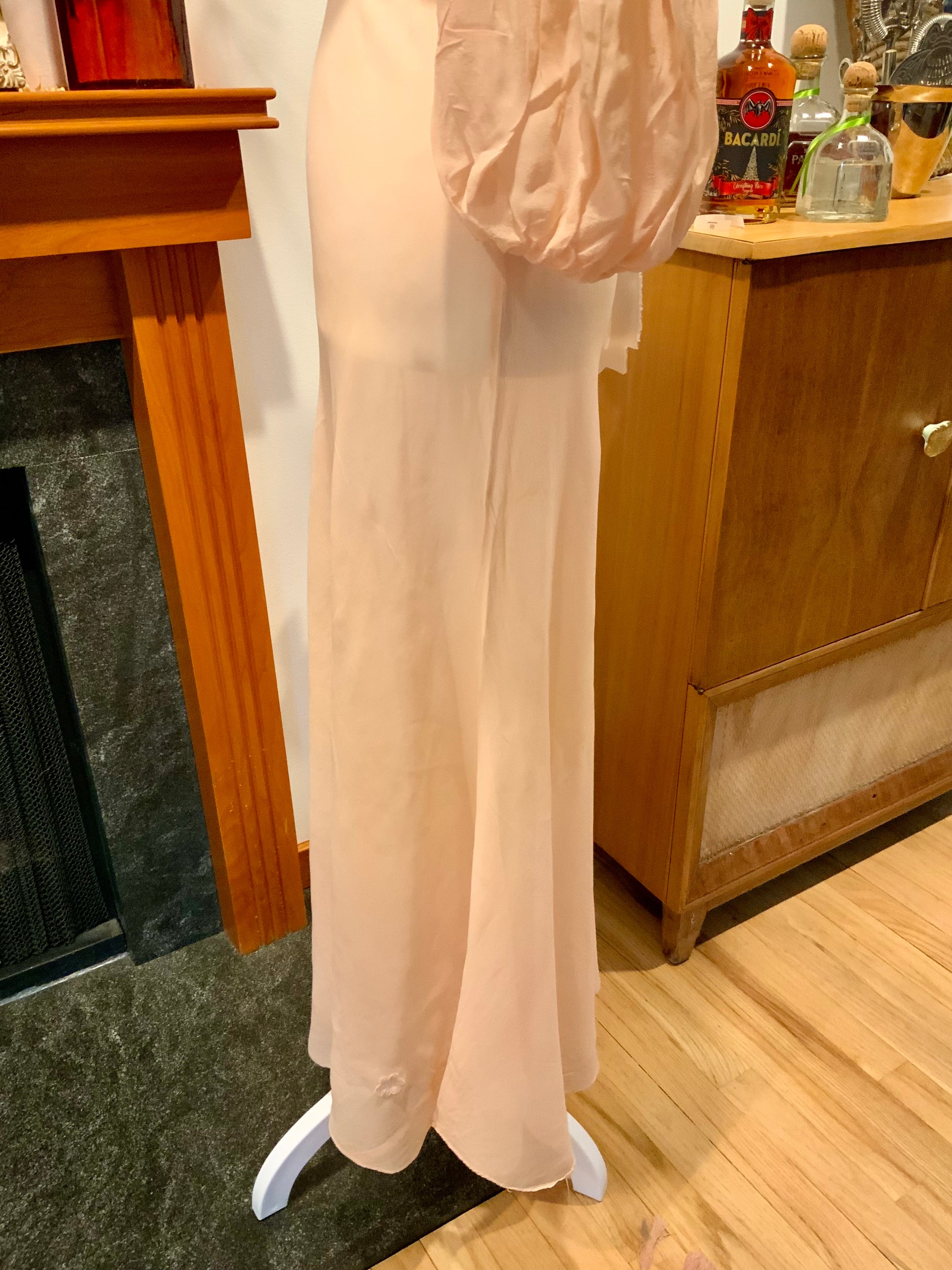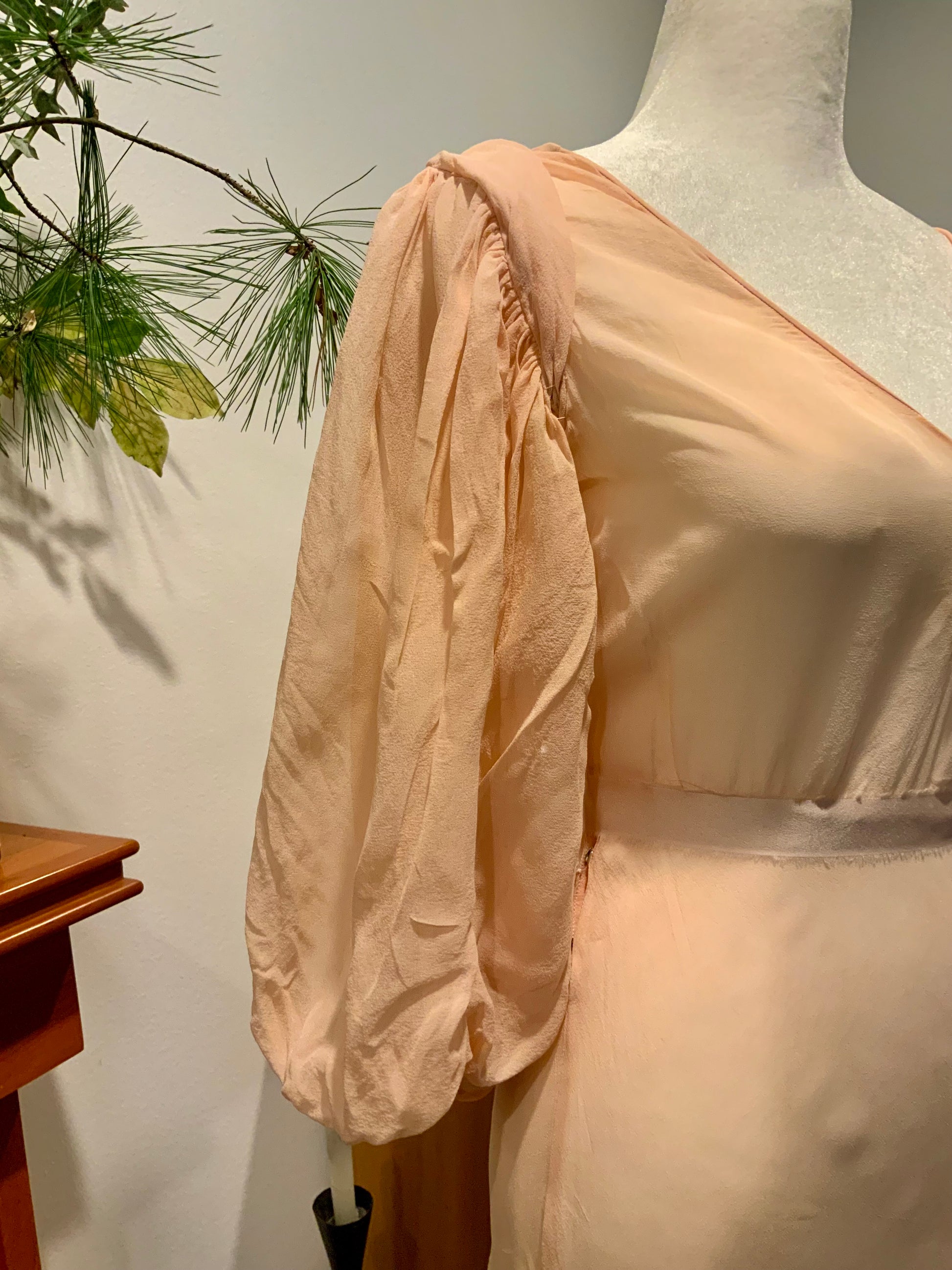 Un 1930s Peach Silk Chiffon Bias-Cut Gown with Bishop Sleeves | 30AU