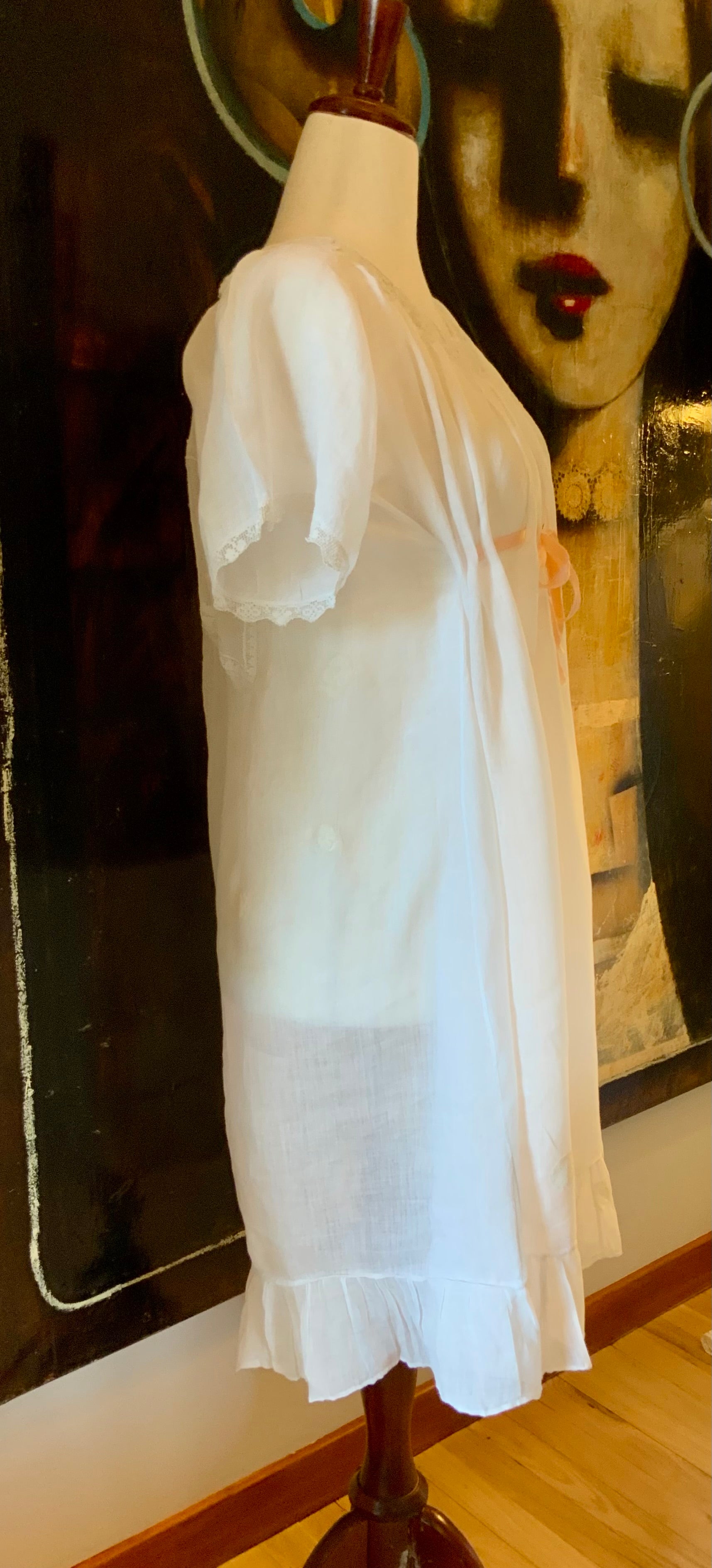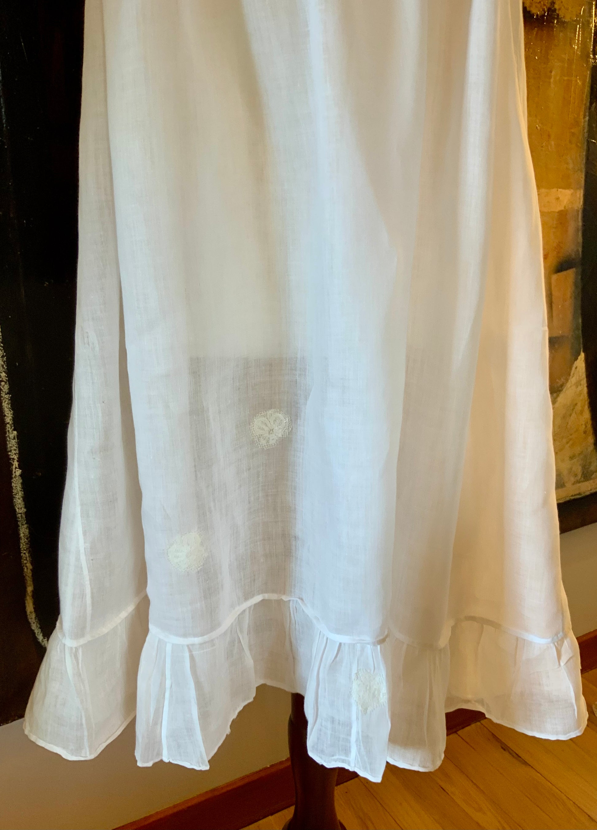 An evocative antique Edwardian cotton nightgown, carrying both fragility and thoughtful restoration.