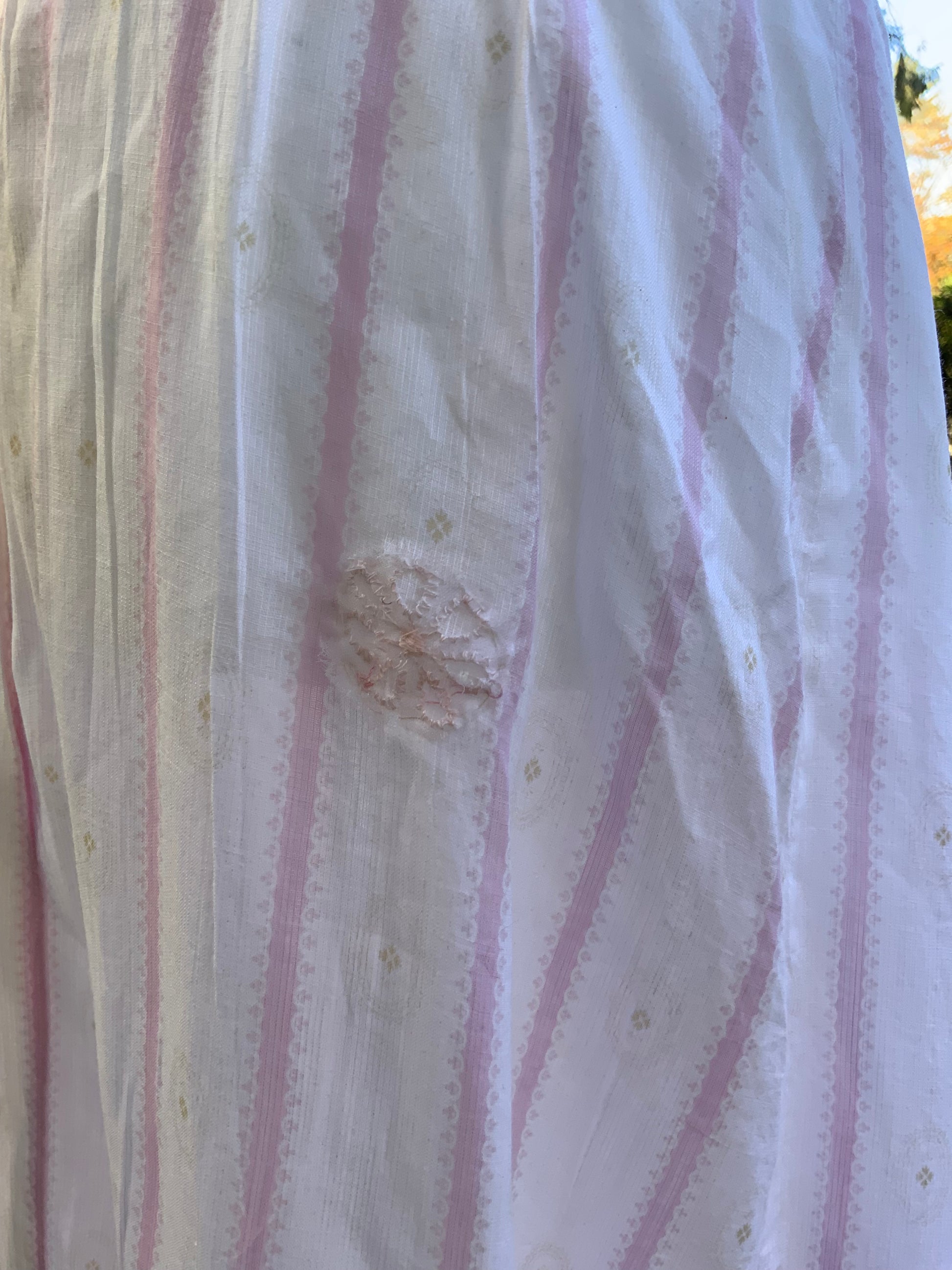 • Fabric: Fine cotton voile with pink woven stripes and dotted pattern