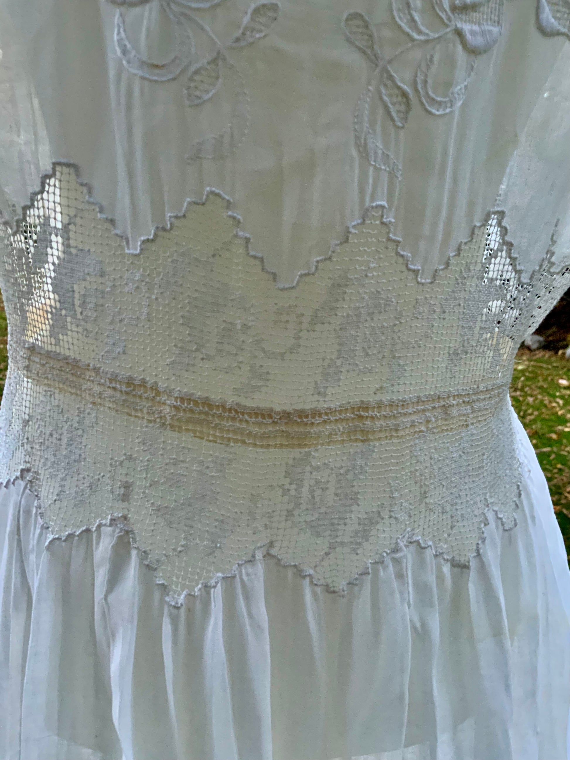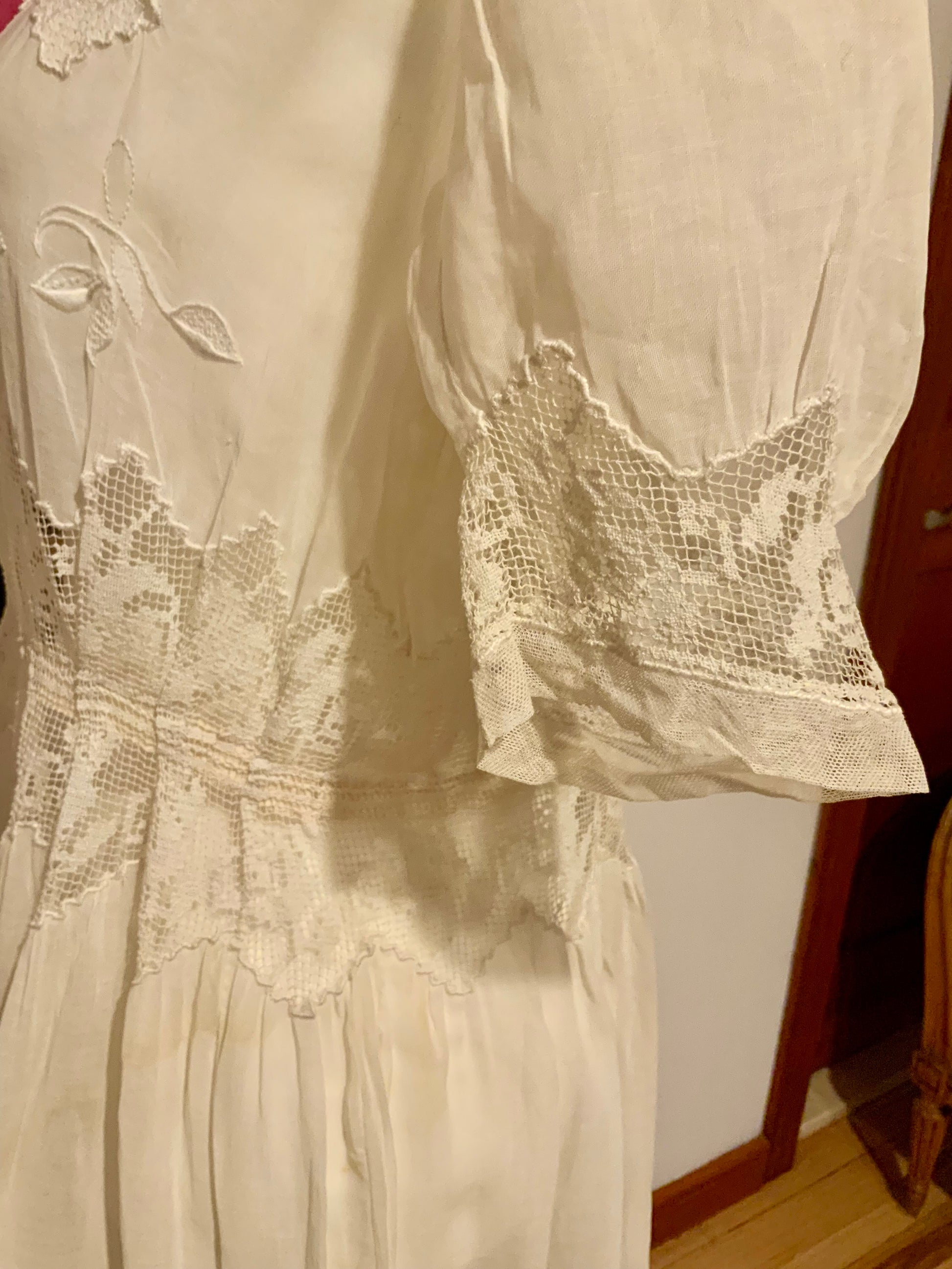 Edwardian Tea Dress in Cotton Voile with Handmade Lace & Embroidery — c. 1905–1915