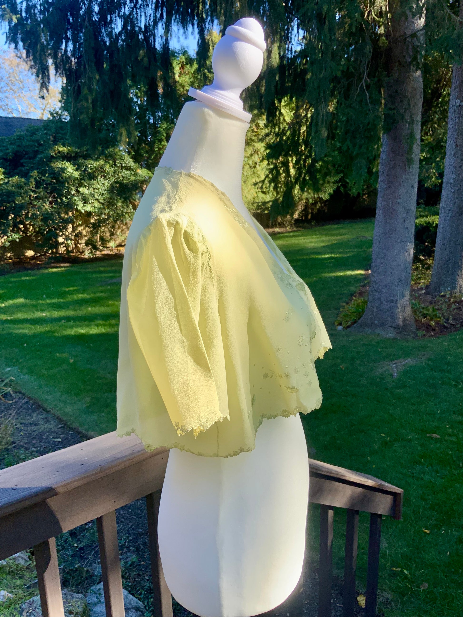 Stunning 1920s pure silk bed jacket in a rare and luminous mint-lime tone — one of those unforgettable colors that only true antique silk can achieve. The fabric feels weightless and fluid, with delicate hand embroidery adding the perfect romantic touch. This piece captures the effortless luxury and quiet elegance of the early 20th century.
