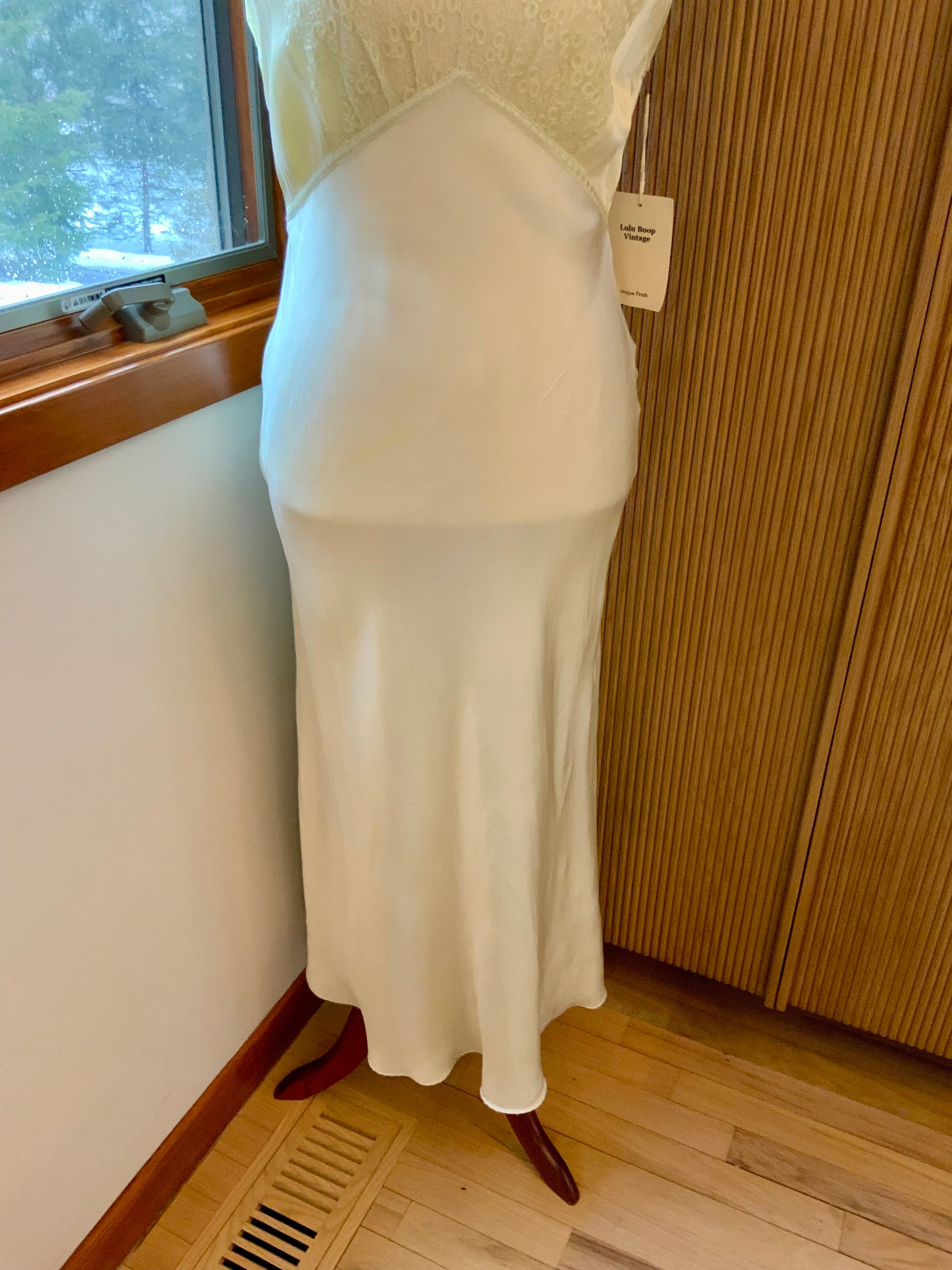 1970s Hand Dyed Bias Cut Satin Gown | 1940s Inspired Lace Bodice Maxi Dress | Pale Celadon Vintage Slip Dress- 40V