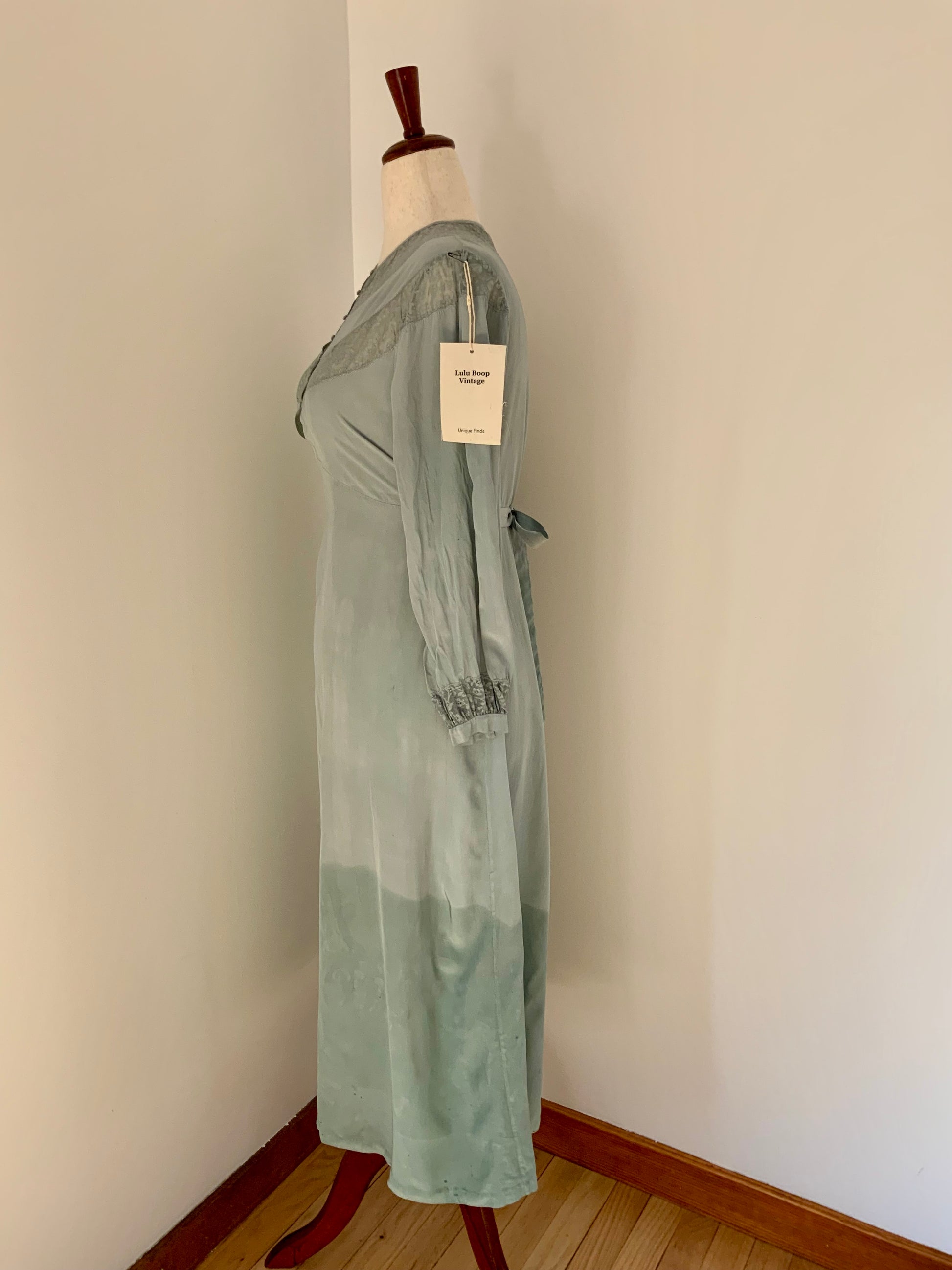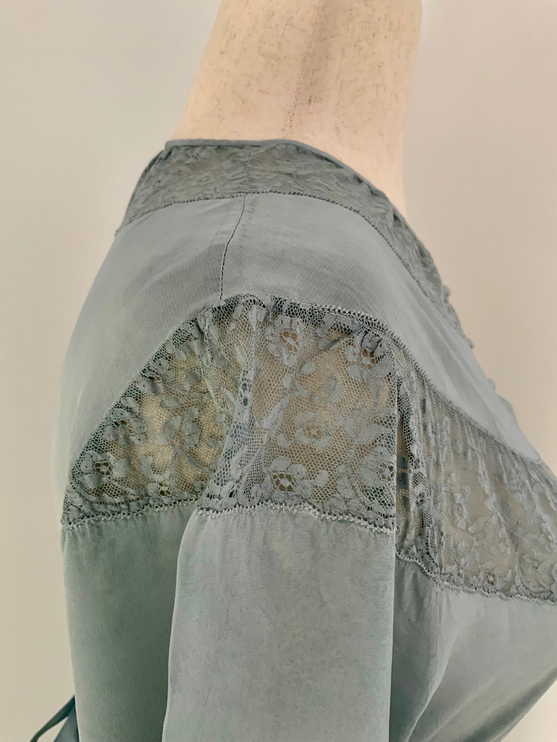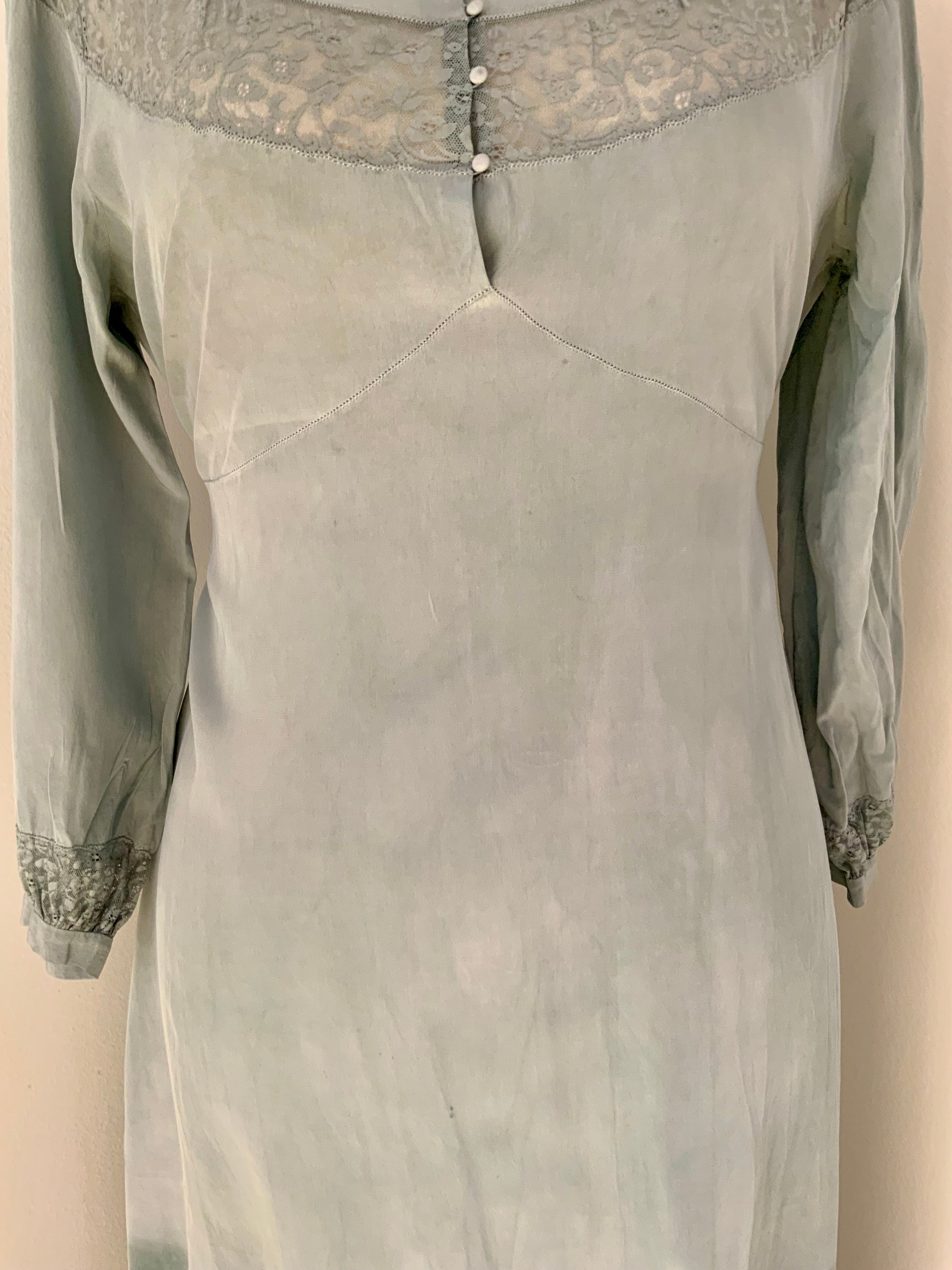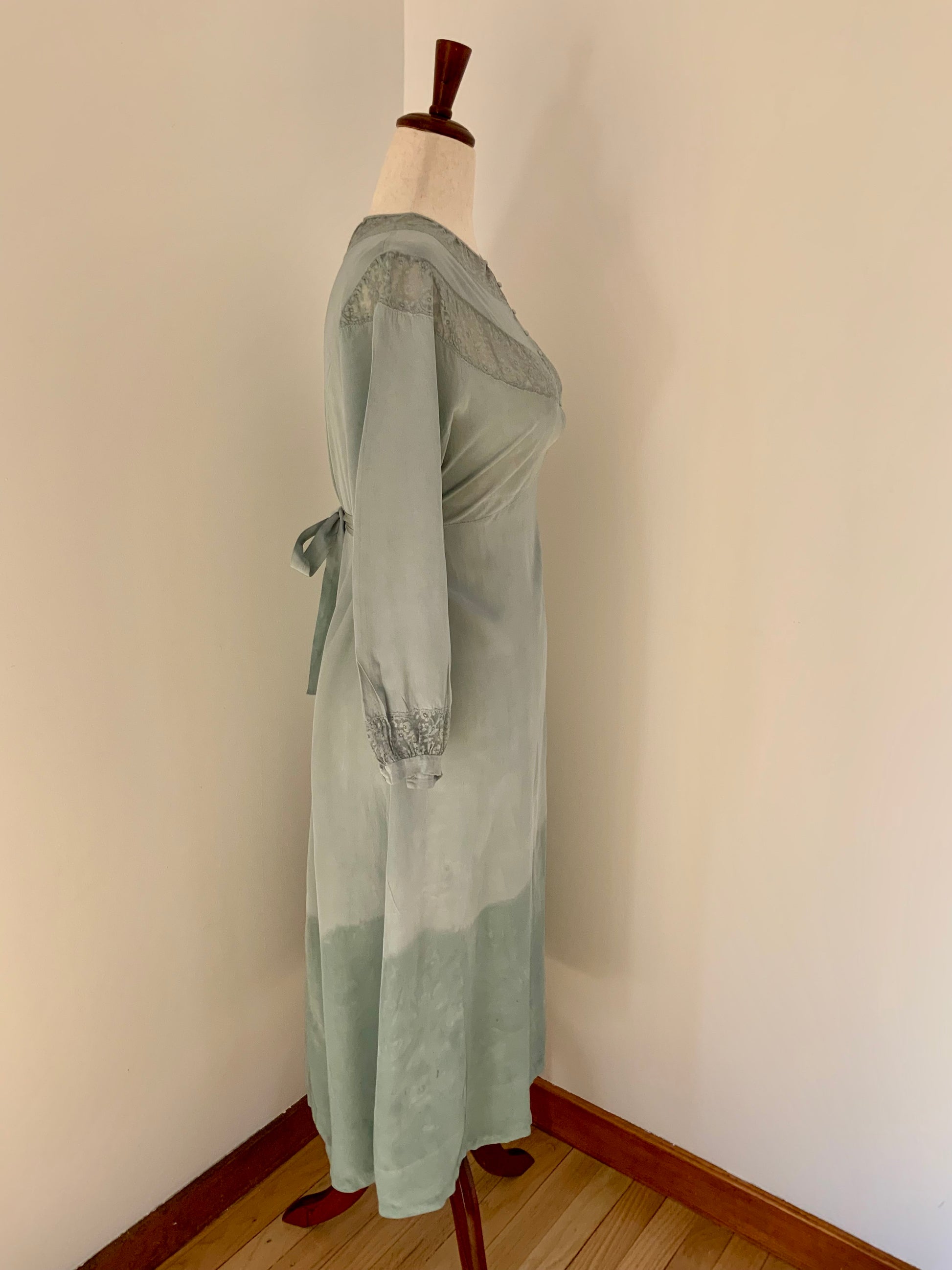 Hand Dyed Vintage Sheer Nightgown Dress – Sage Green Ombré – Lace Detail – One of a Kind - 30Z