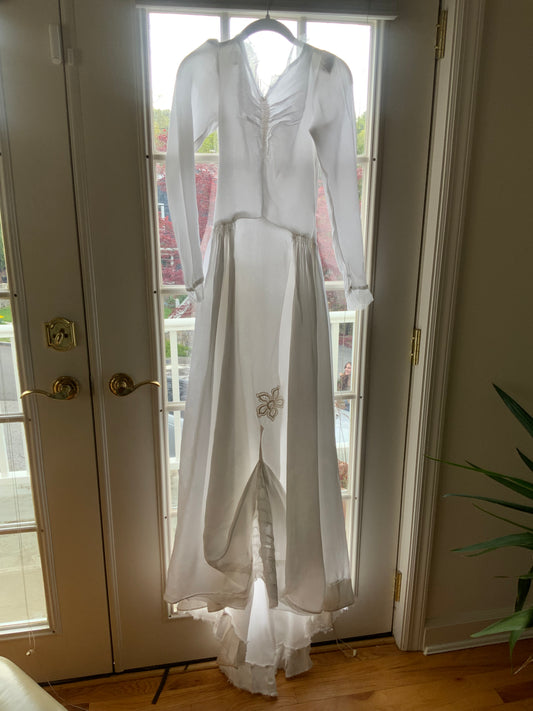 Lace & Pleated Chiffon Nightgown – Ethereal Old Hollywood Lingerie Dress- 40s - 40B3
