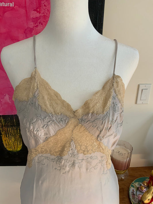 Silk Lace Slip Dress Grey - 40s - 40AH