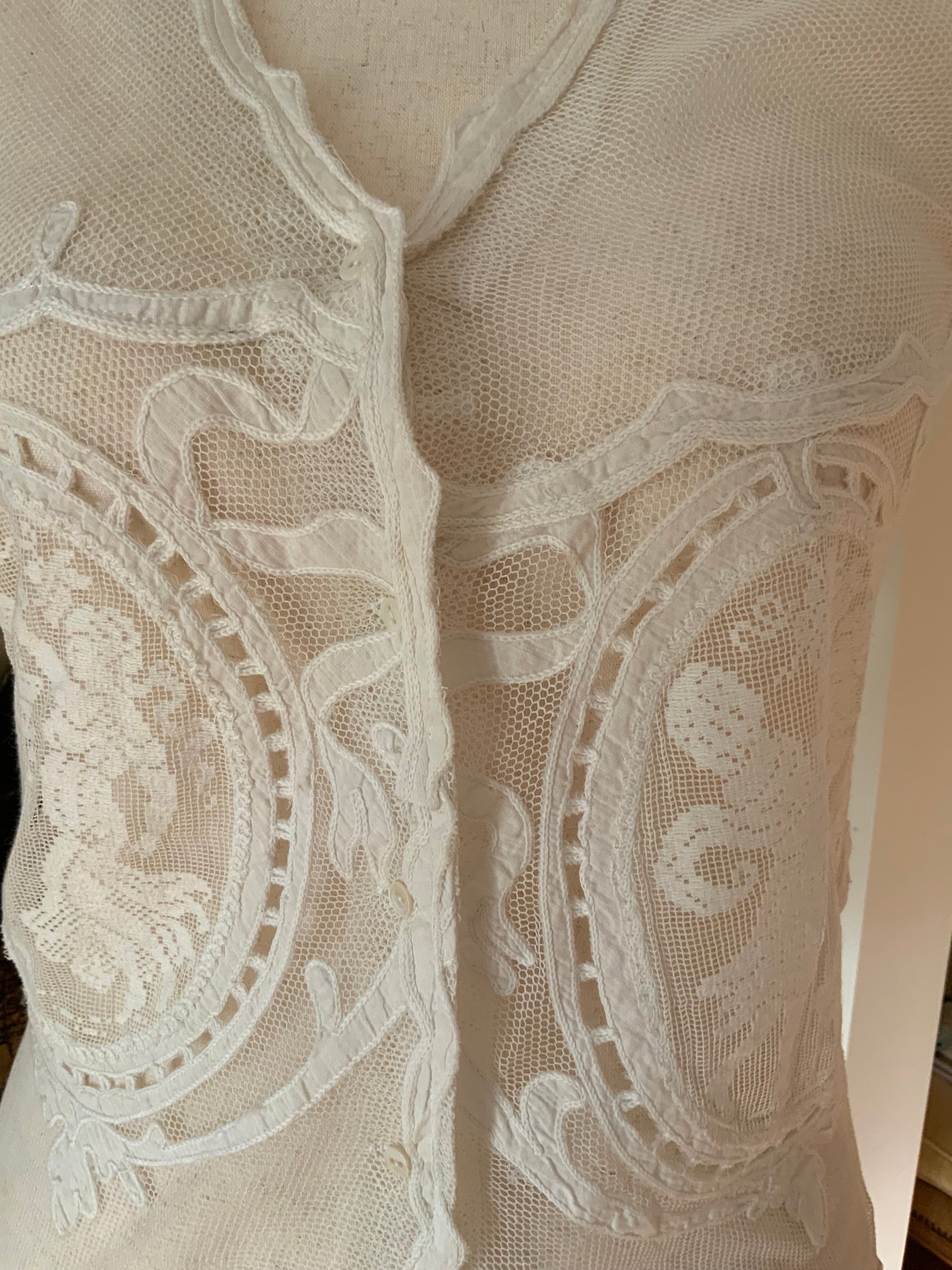Antique Filet Lace Blouse – Stunning Handcrafted Design with Figure Details
