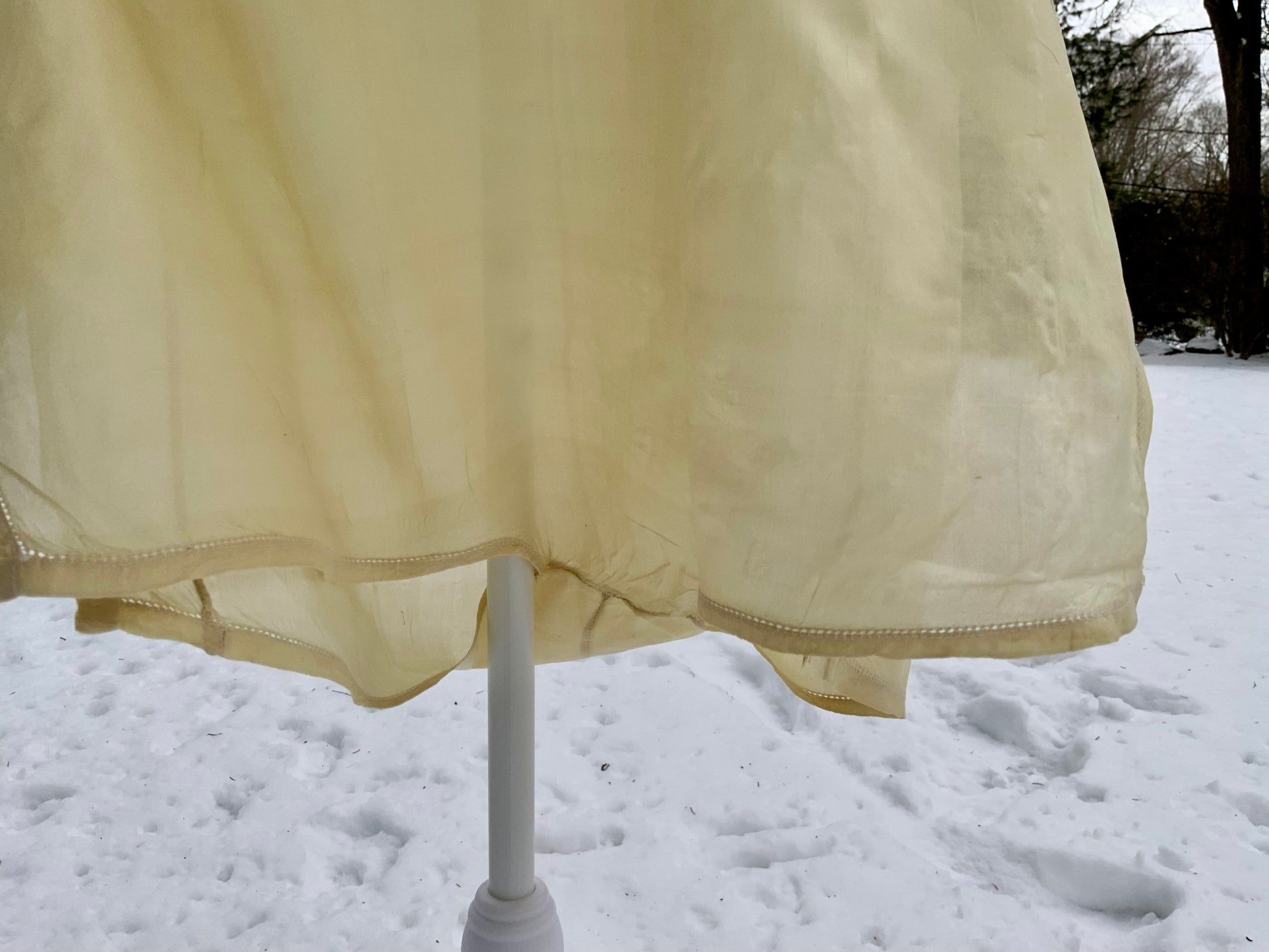 • Pre-1930s fabrics (silk, muslin, lace) are fragile and should be worn with care and ease