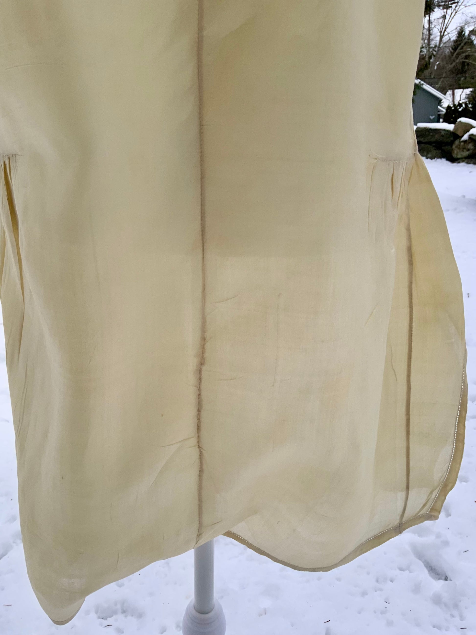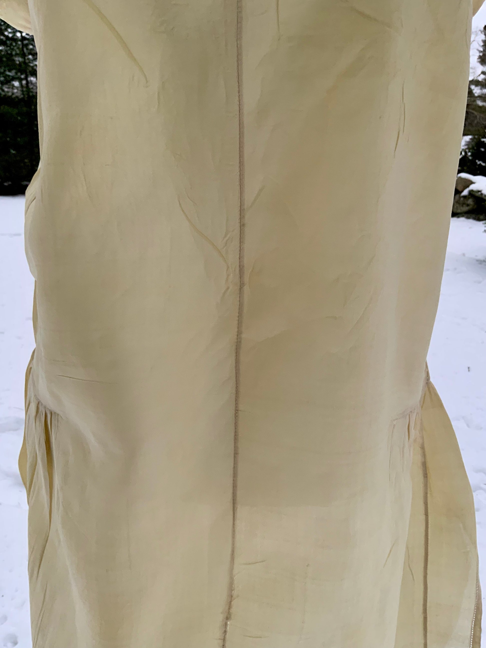 - Minor fraying and small separations consistent with nearly 100-year-old silk