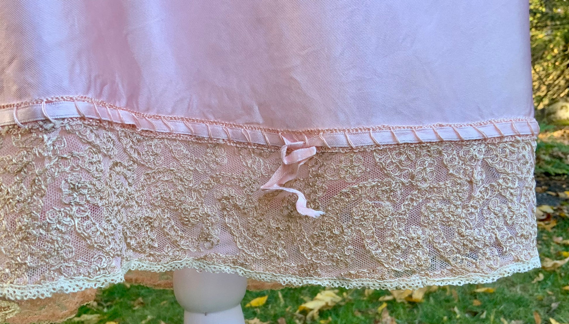 1930s Pink Rayon Satin Slip Dress – Vintage Lace Bodice & Hem-40B4