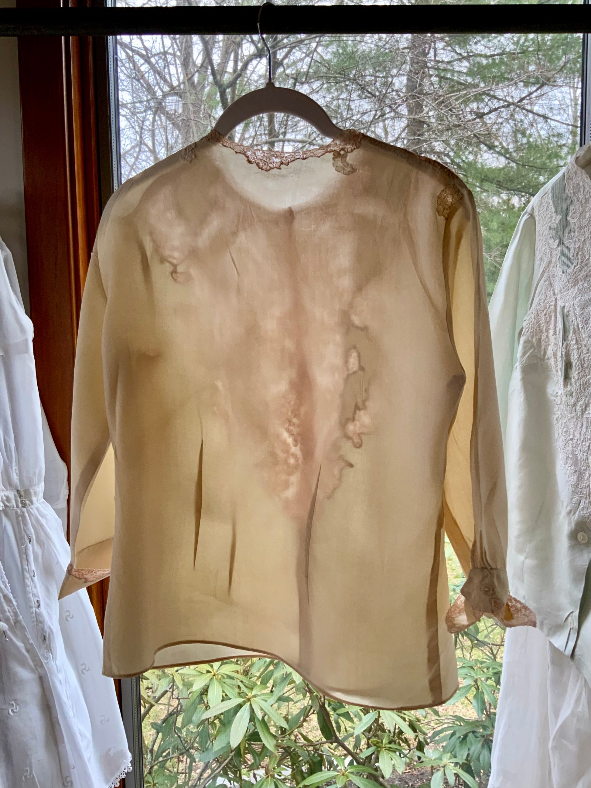 1930s Silk Blouse with Blush Lace Appliqué – Sheer Antique Chiffon Top, Romantic Lingerie Style, Bridal Boudoir Vintage-30BG