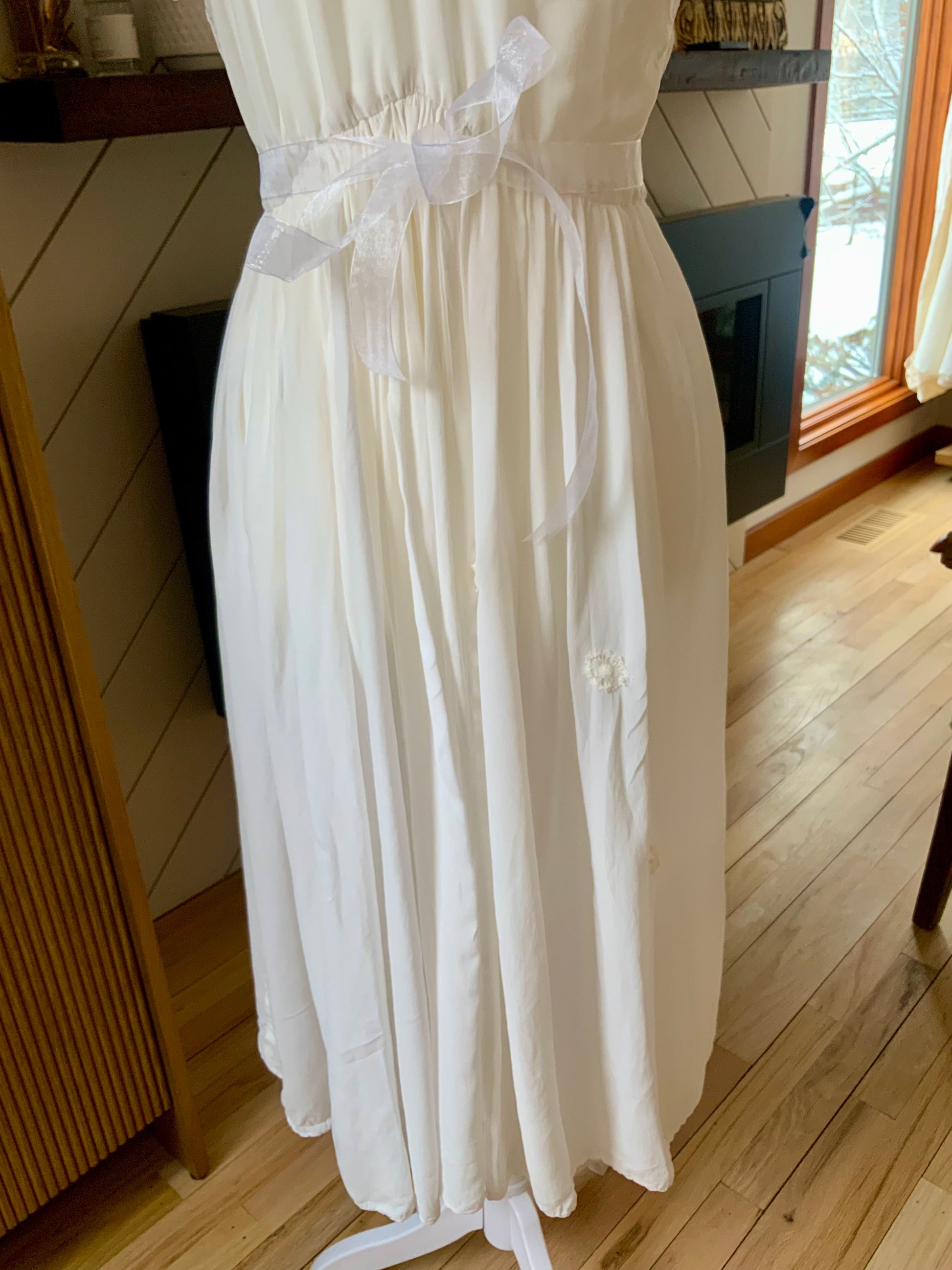 Ideal as a boudoir piece, heirloom nightgown, bridal preparation garment, or a rare collectible antique textile.