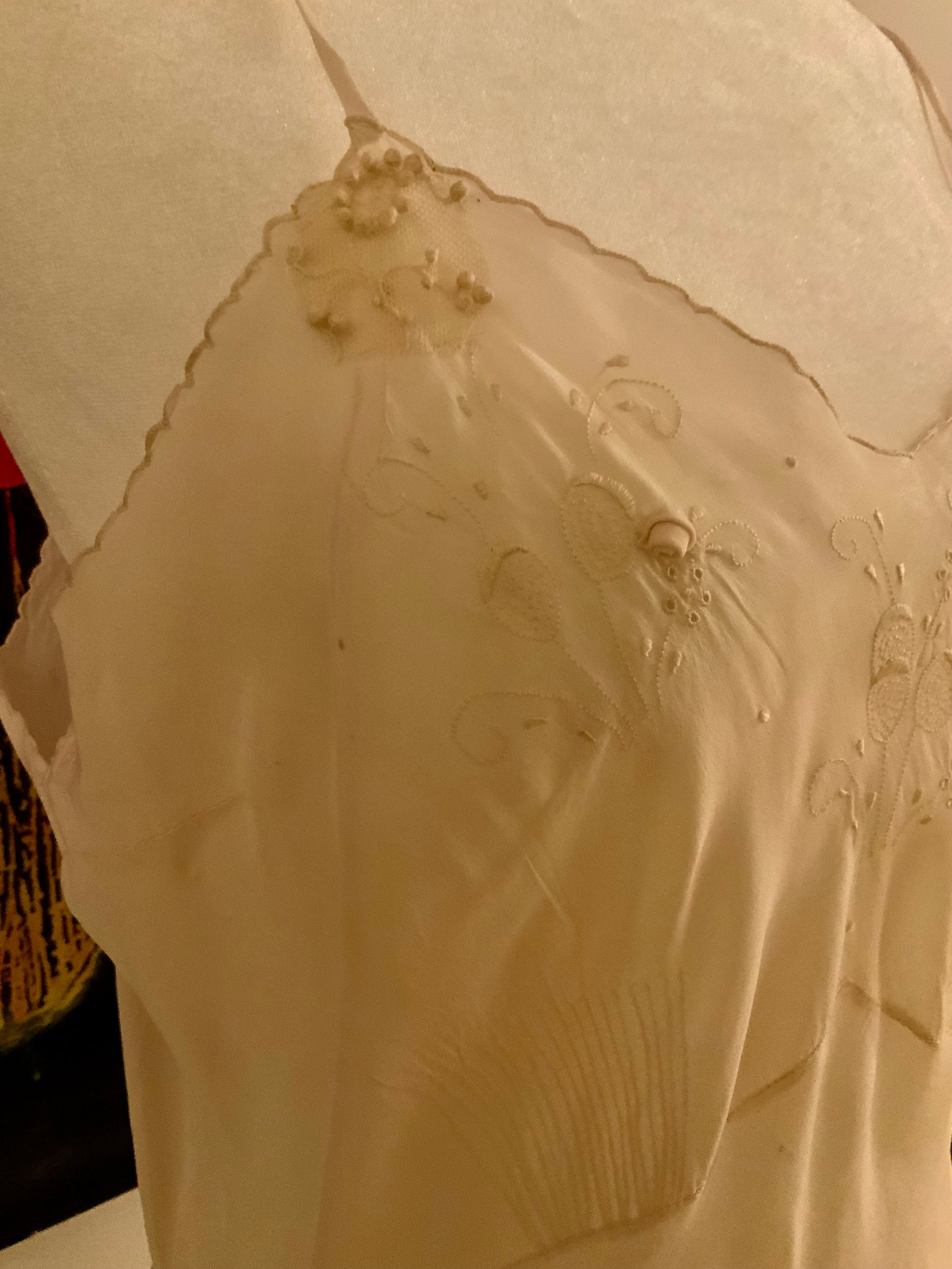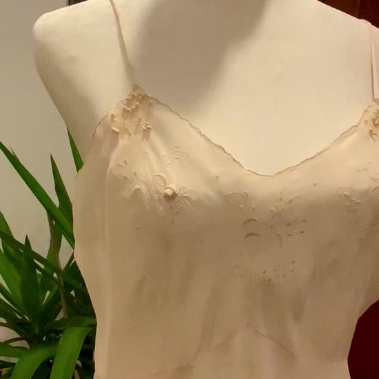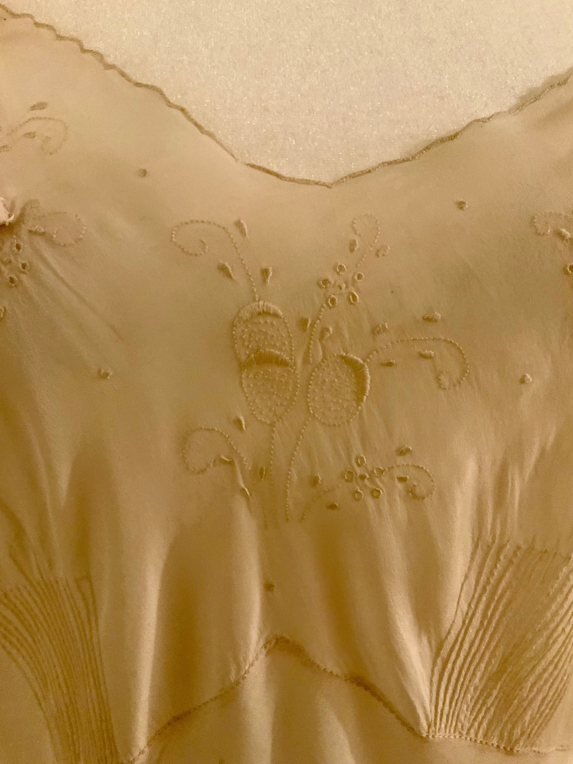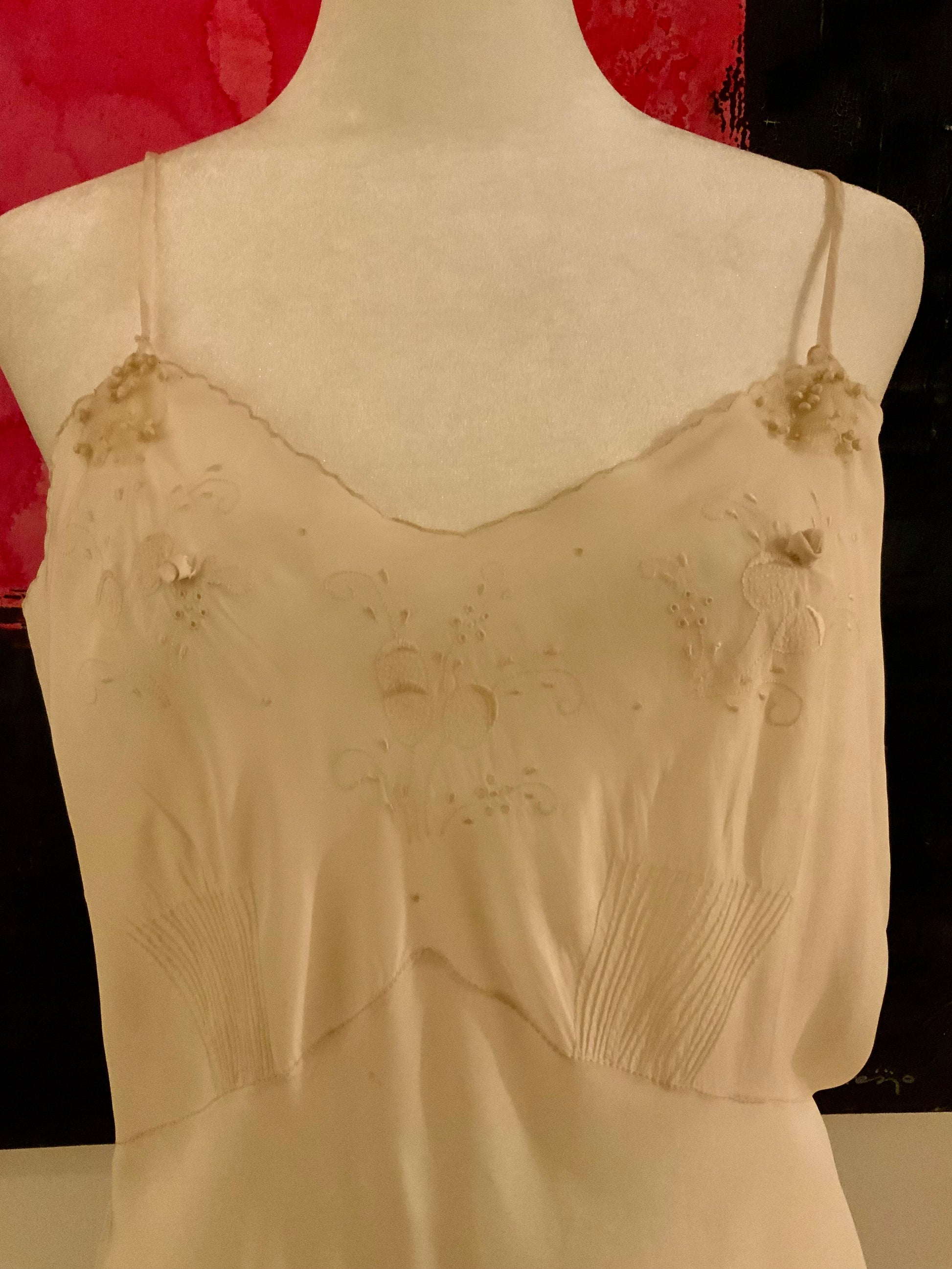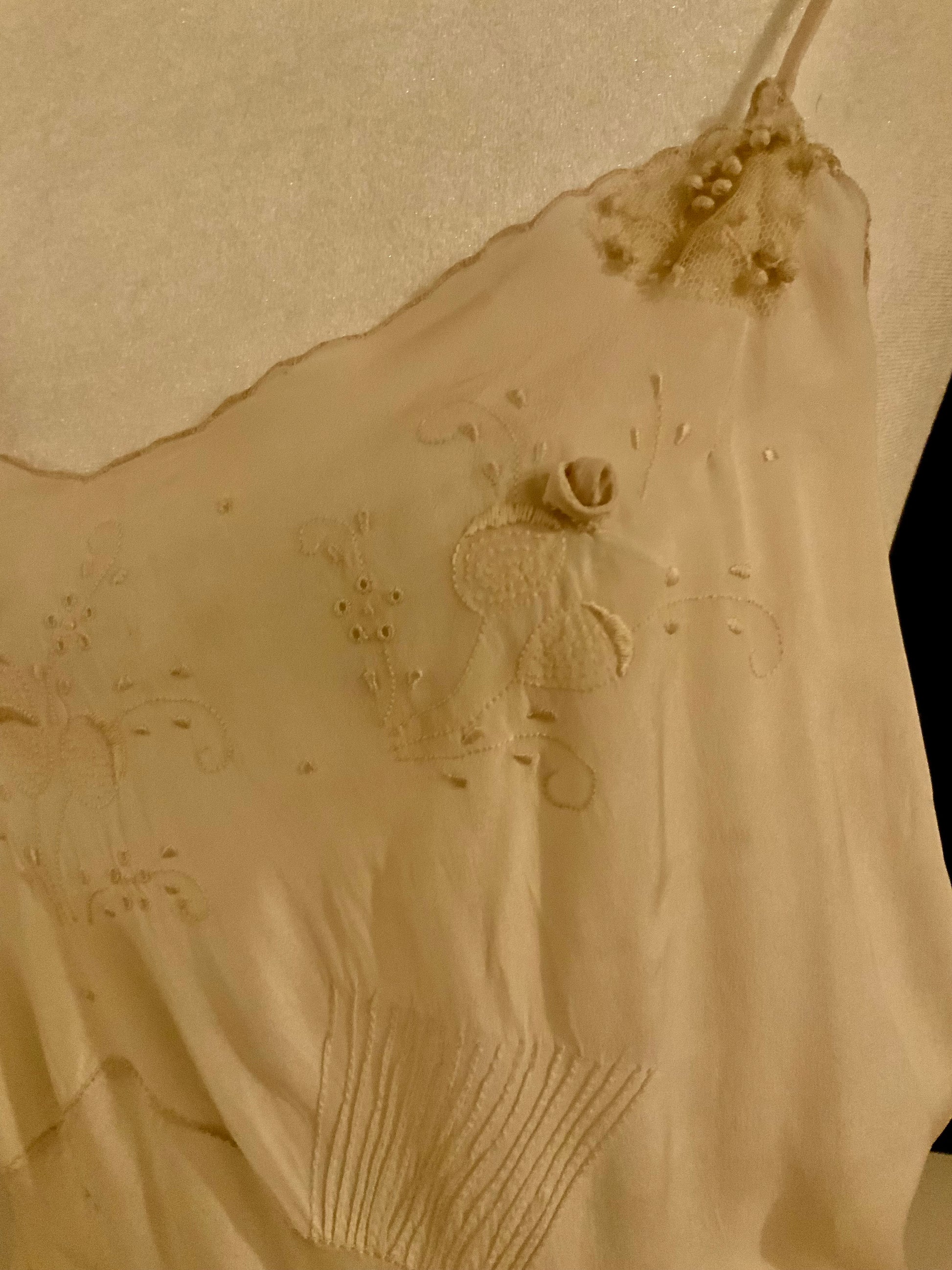 Antique 1920s Pure Silk Bridal Slip – Hand Embroidered Ivory Lingerie Dress – Edwardian Flapper Era Nightgown-20AT