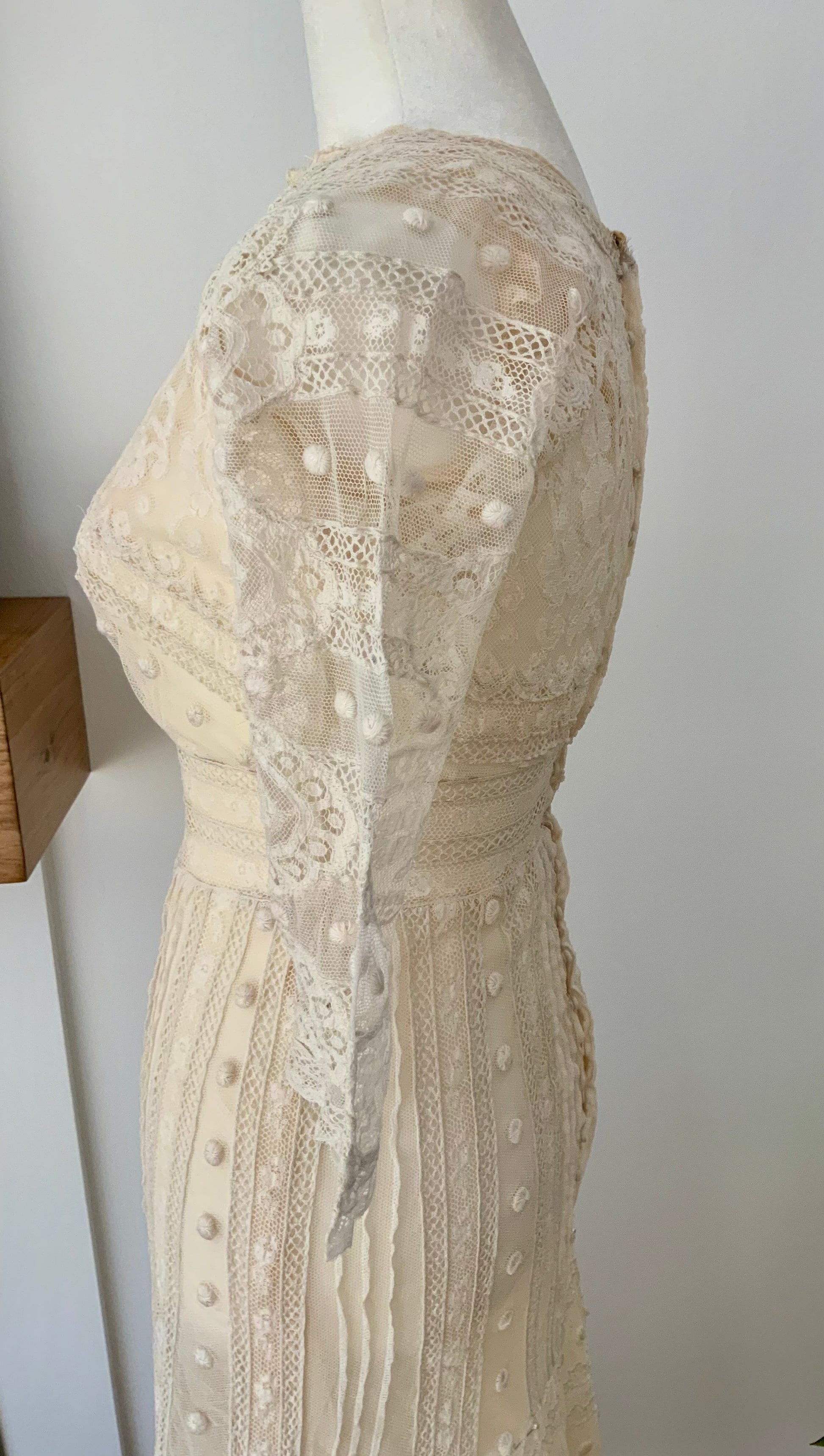 Antique Edwardian Bridal Lace Dress, c. 1909–1914