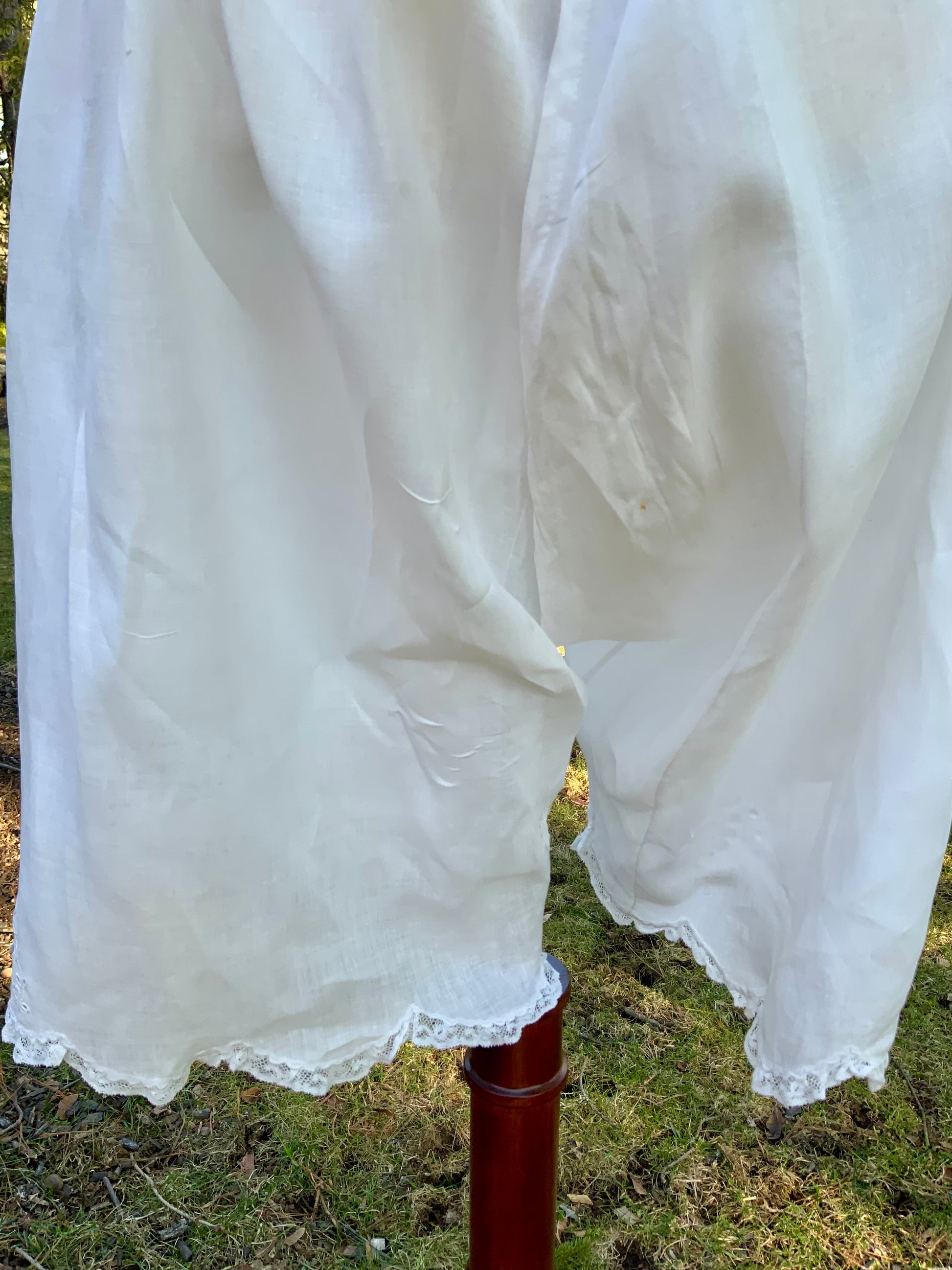 Beautiful authentic Edwardian split drawers (open-crotch bloomers) dating to the early 1900s.