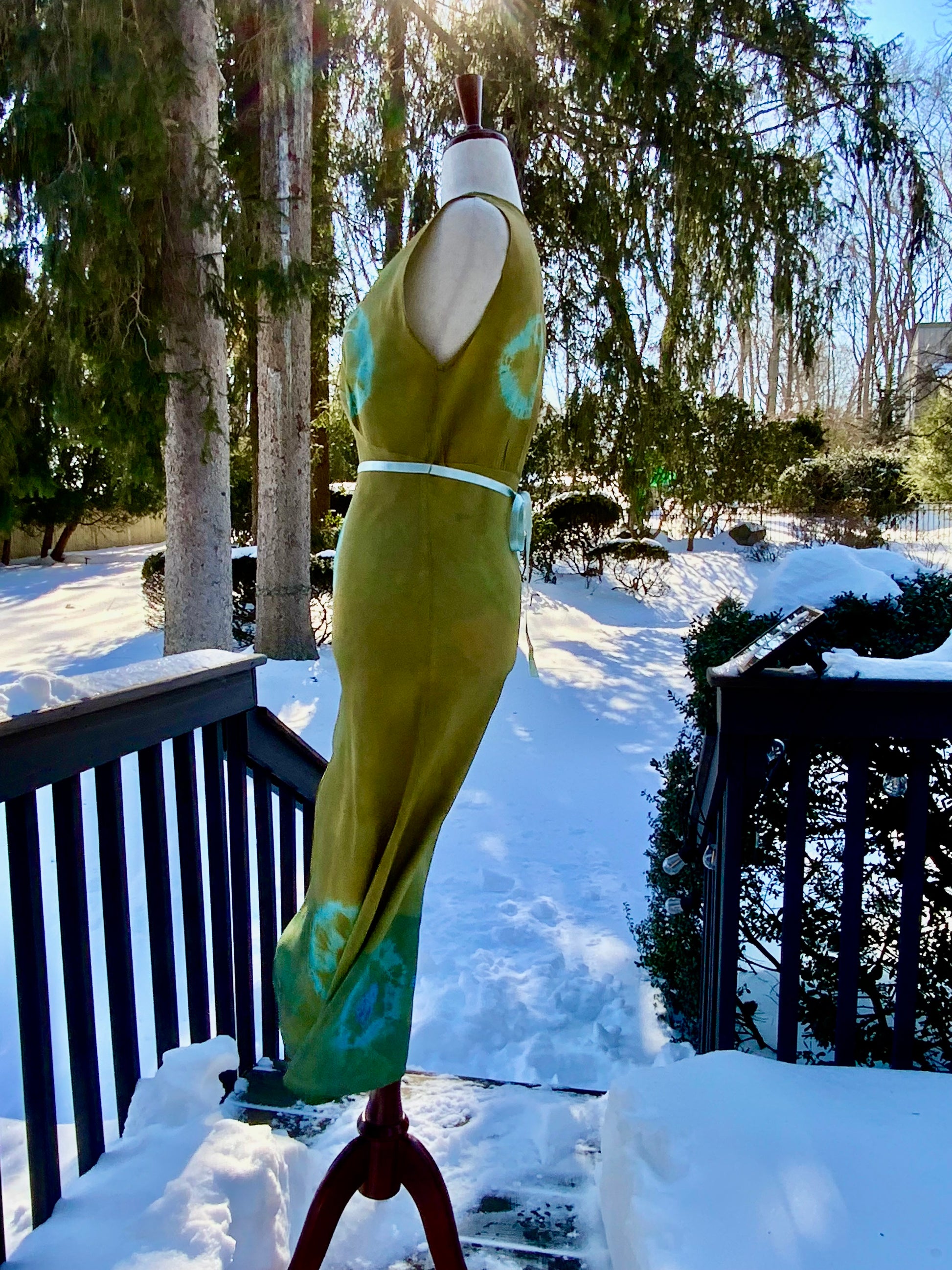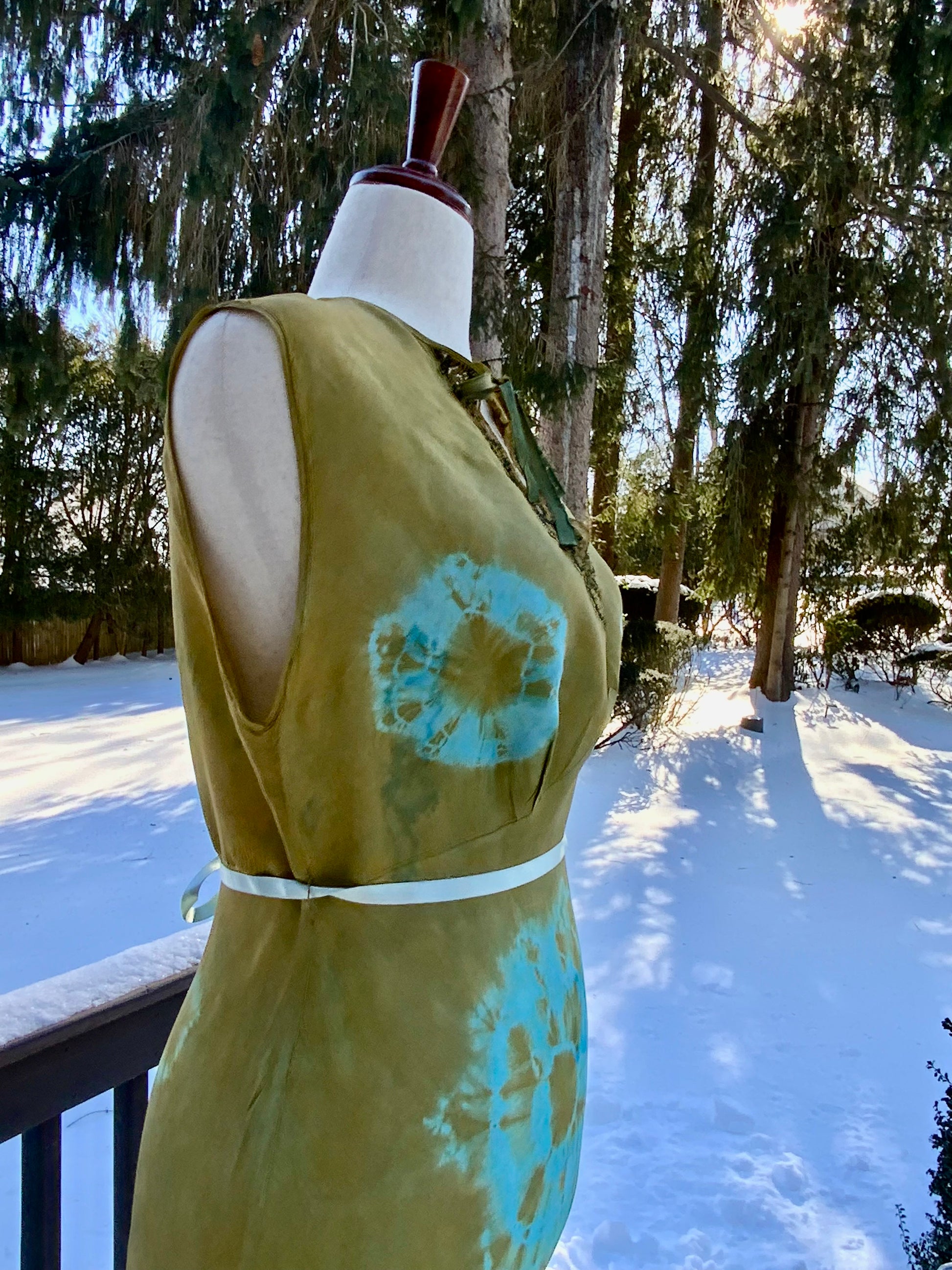 (Copy) Hand-Dyed Vintage Silk Dress – Olive & Aqua Patina | One of a Kind Atelier Piece (1930s–40s)-40B6