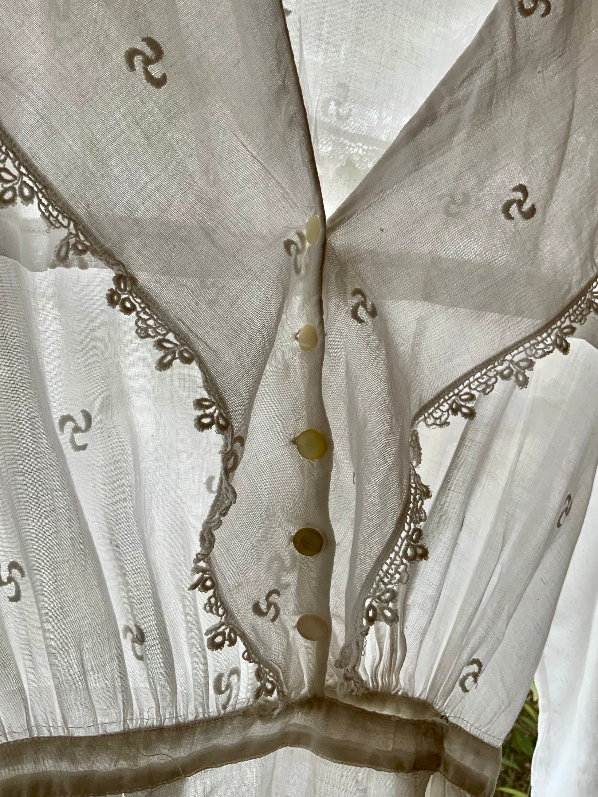 Edwardian Lingerie Dress 1915–1925 Sheer Embroidered Cotton with Lace Detail-ED73