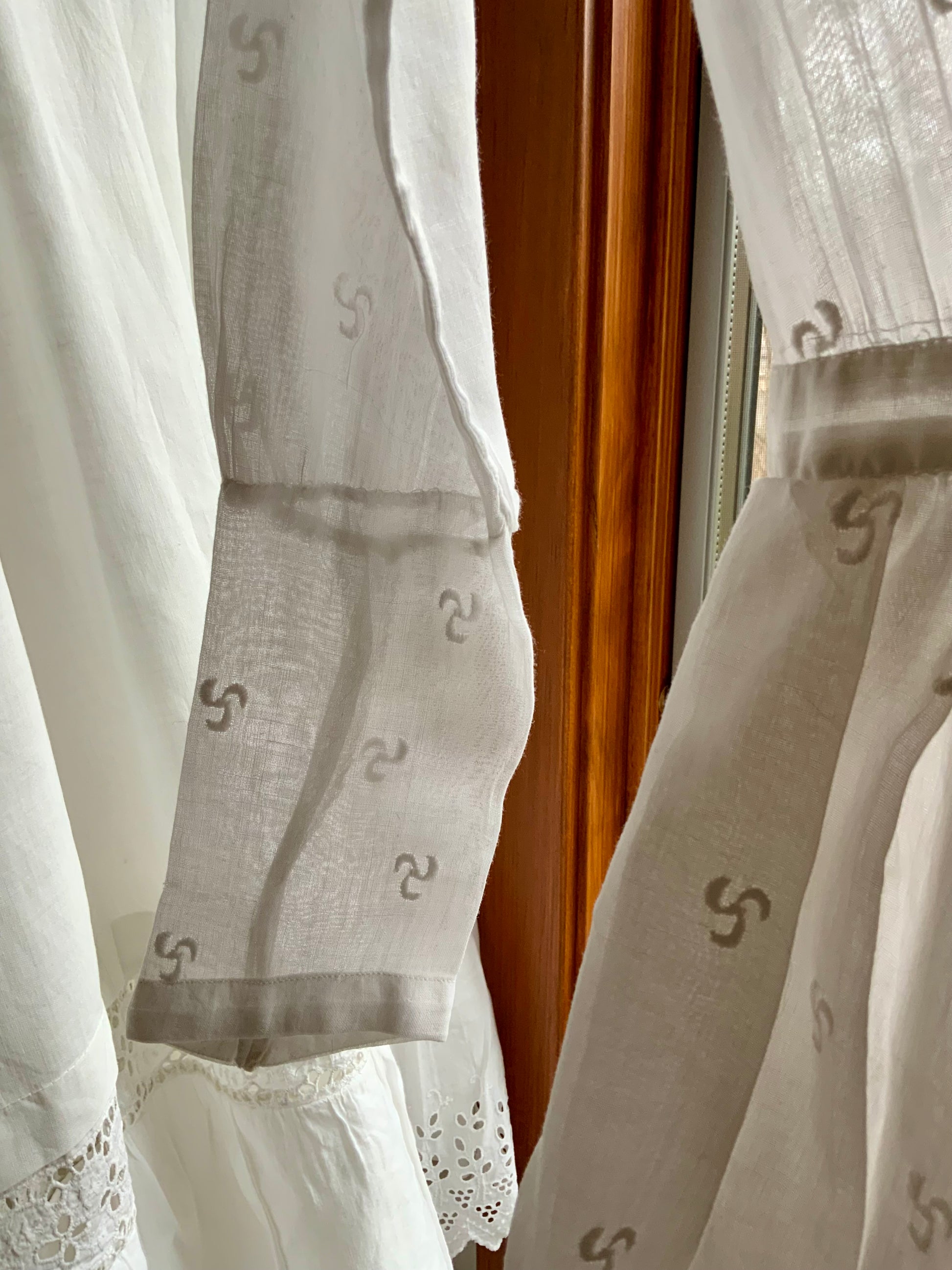 This piece has been thoughtfully restored by Lulu Boop Atelier. 4 small areas of wear have been artistically reinforced using vintage lace appliqués, carefully chosen to harmonize with the original garment and preserve its spirit while allowing it to be worn and appreciated today.
