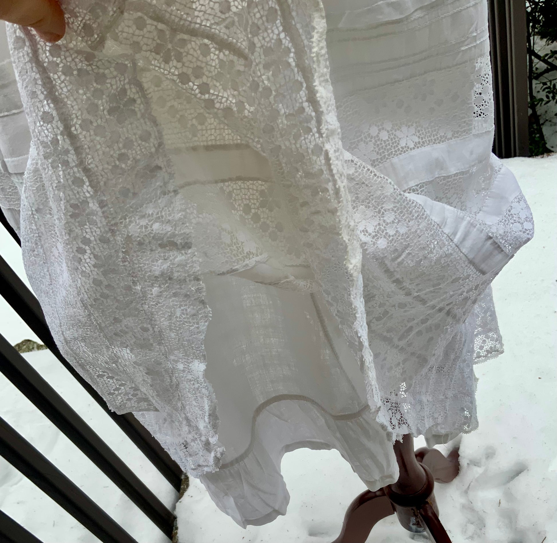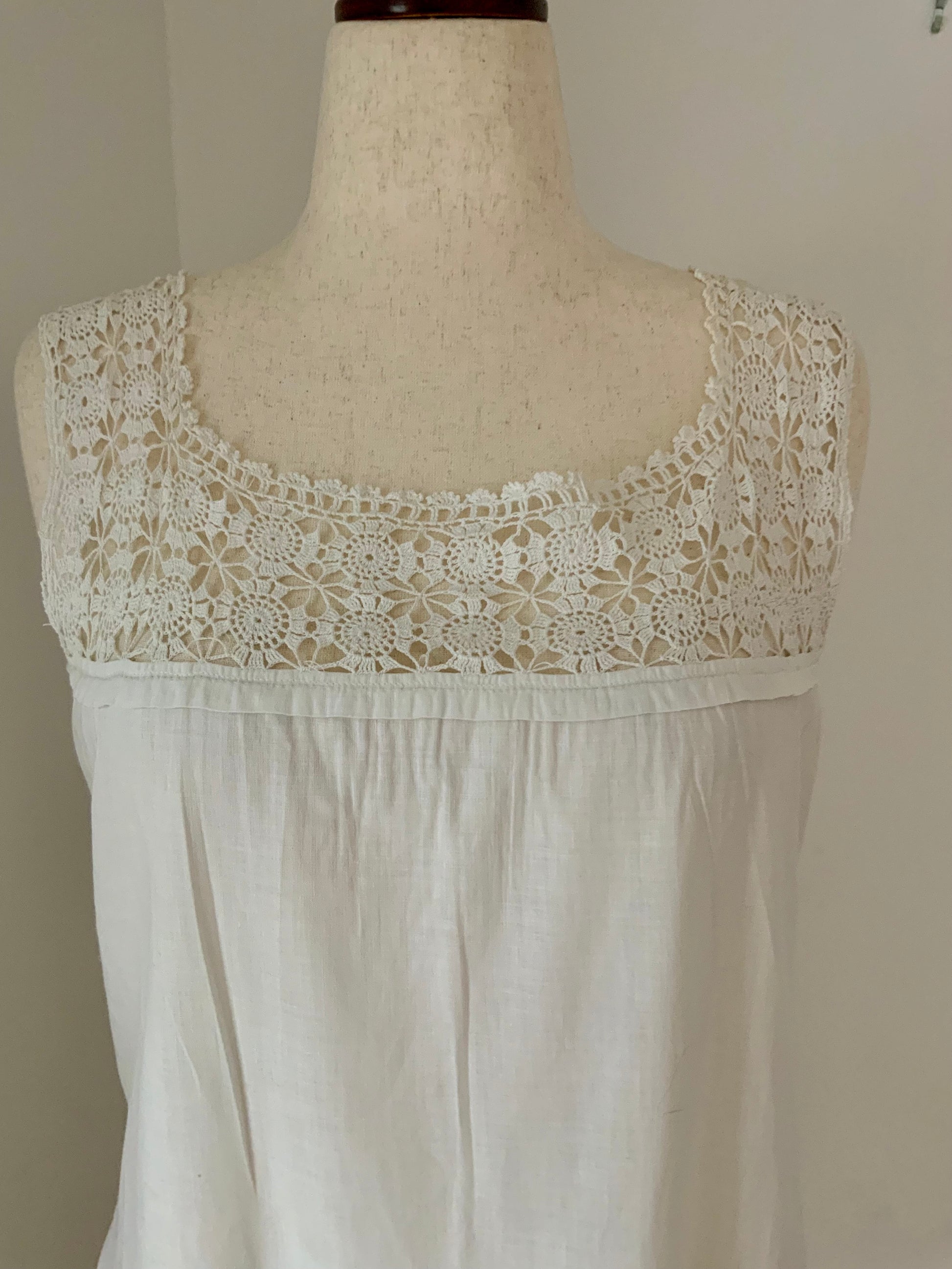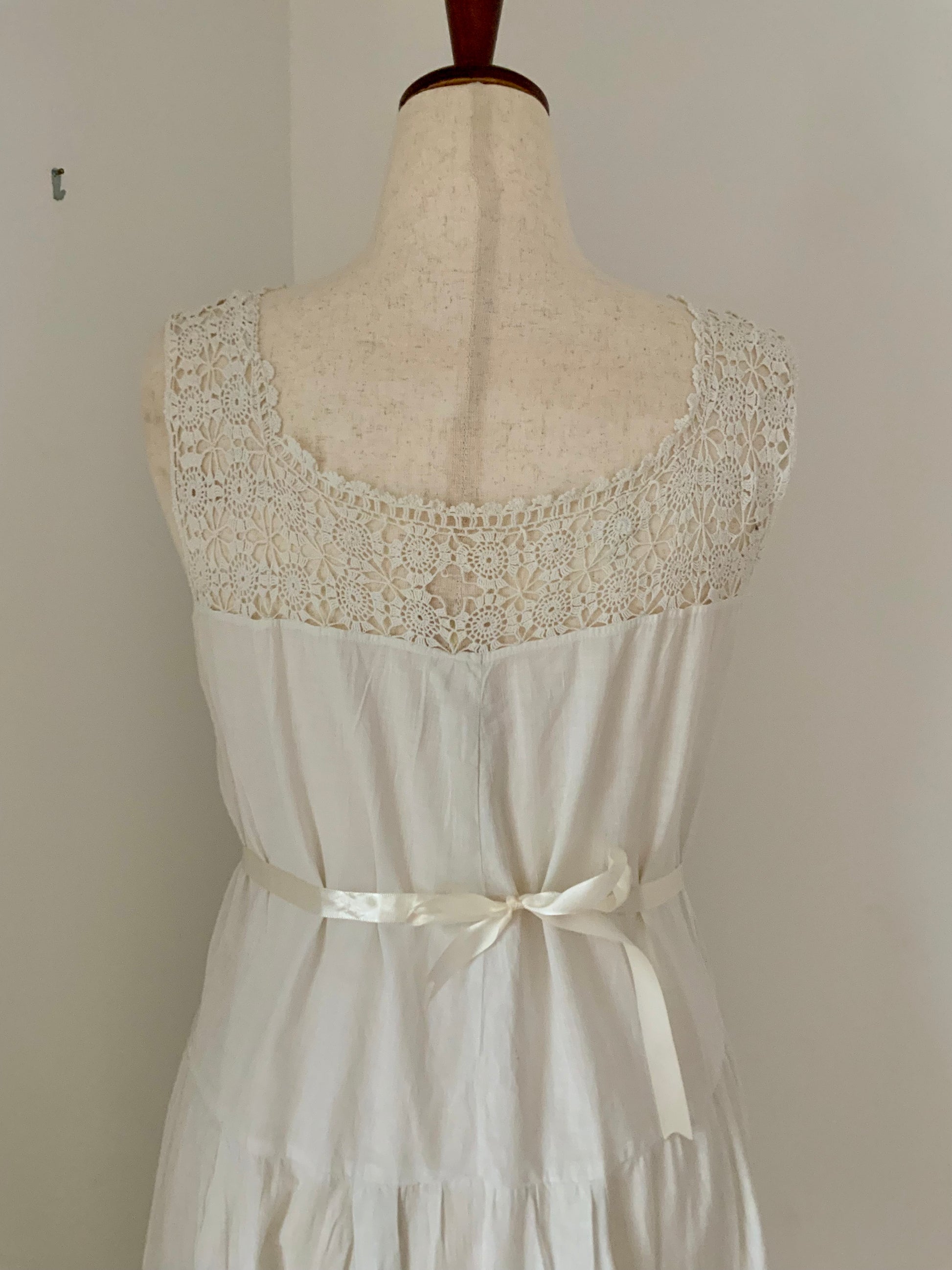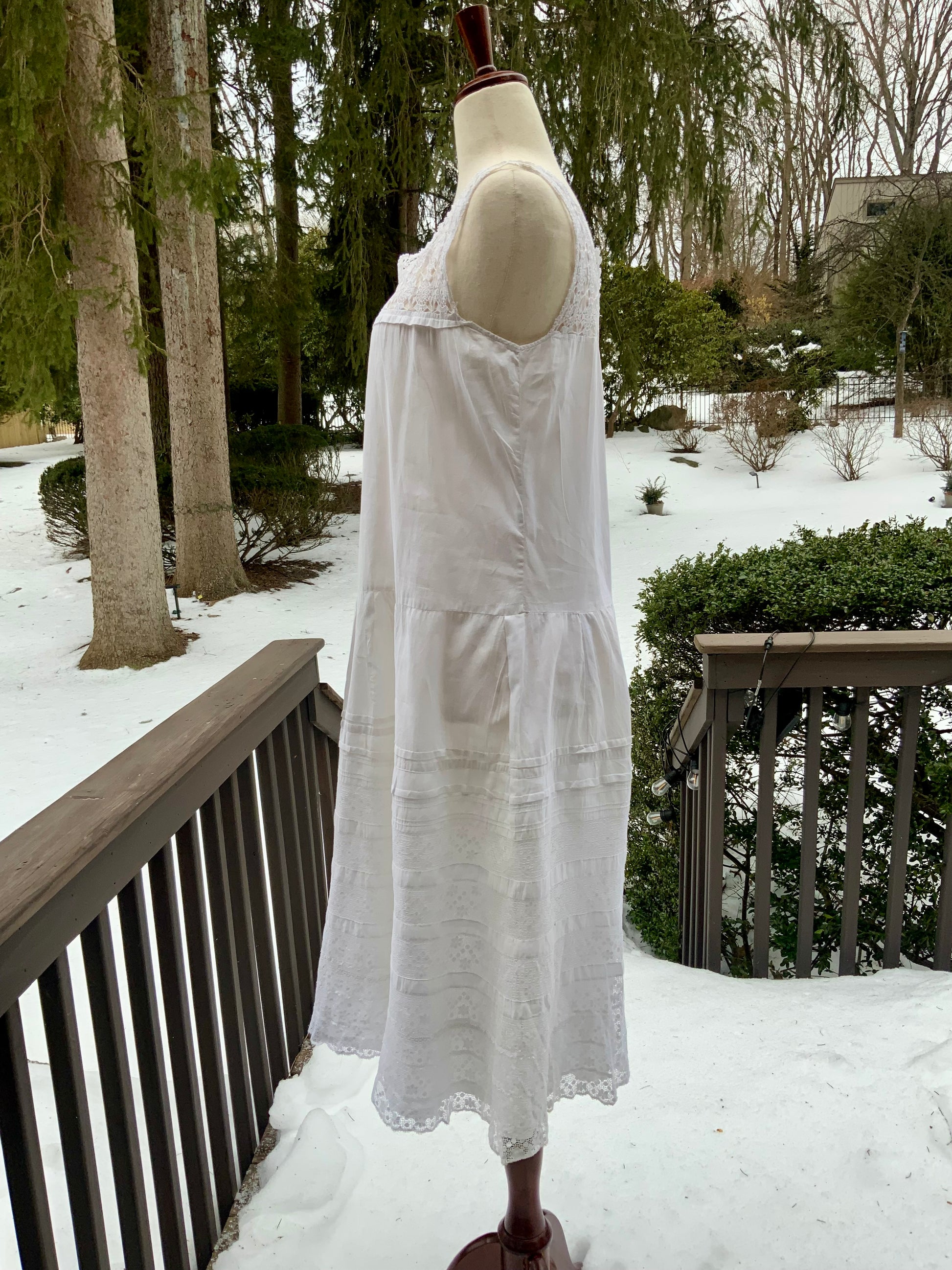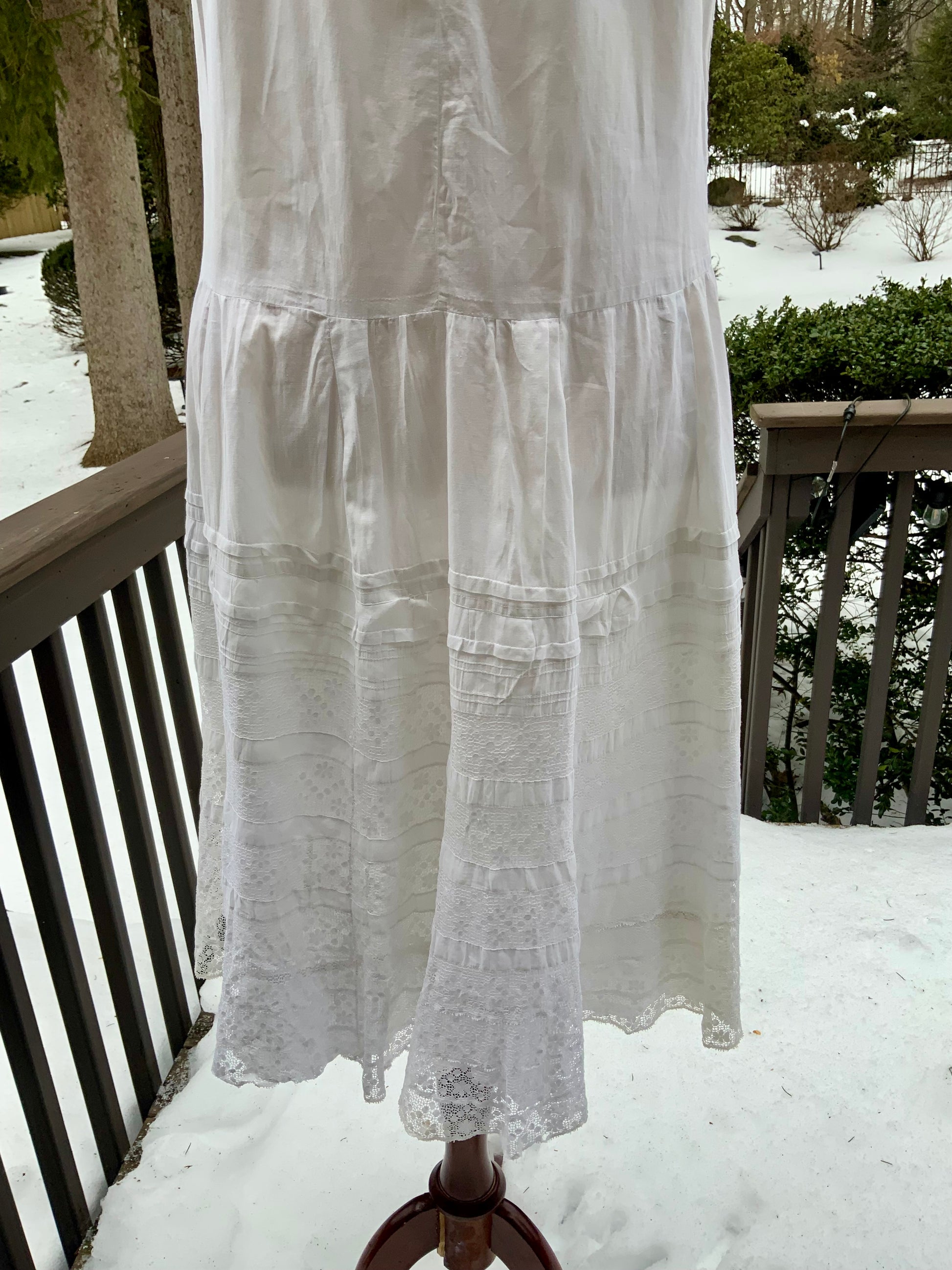 An authentic Edwardian-era cotton lingerie dress dating to approximately 1915–1920.