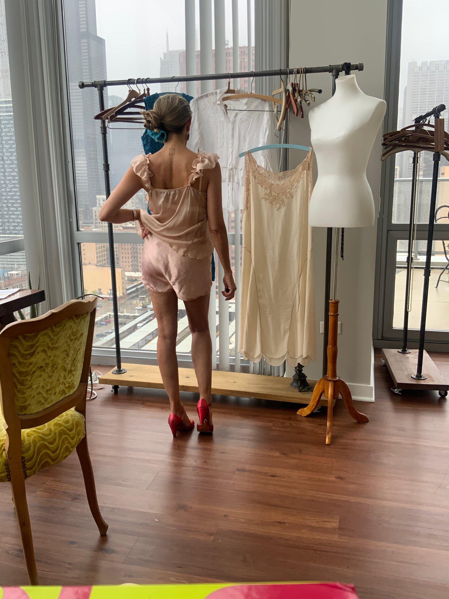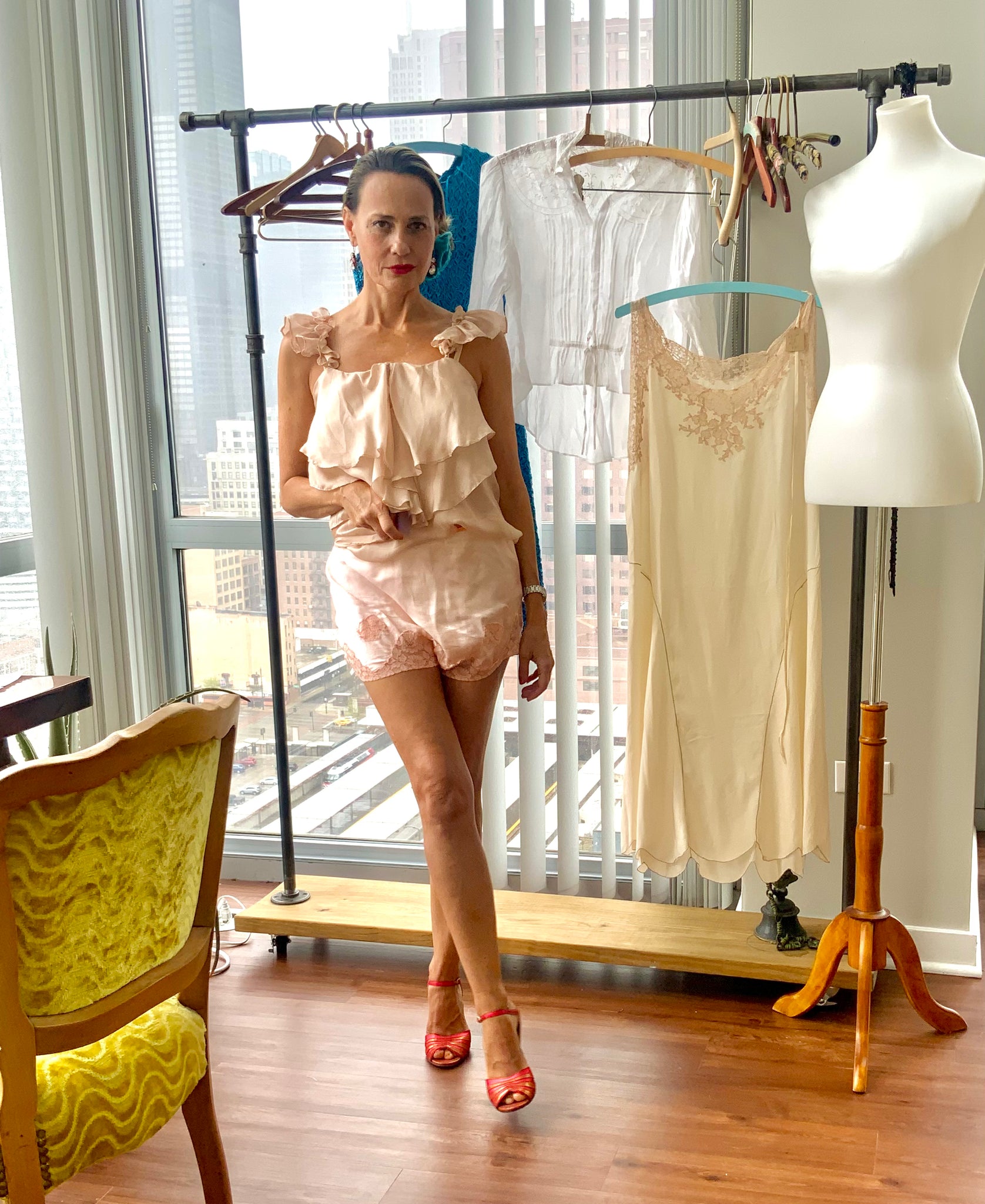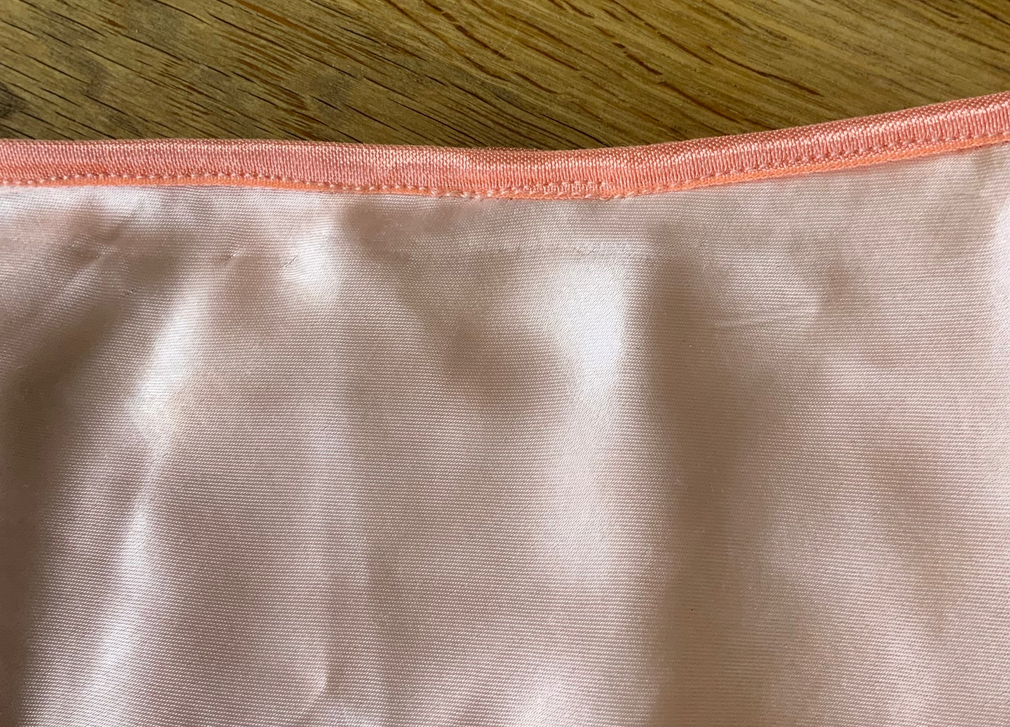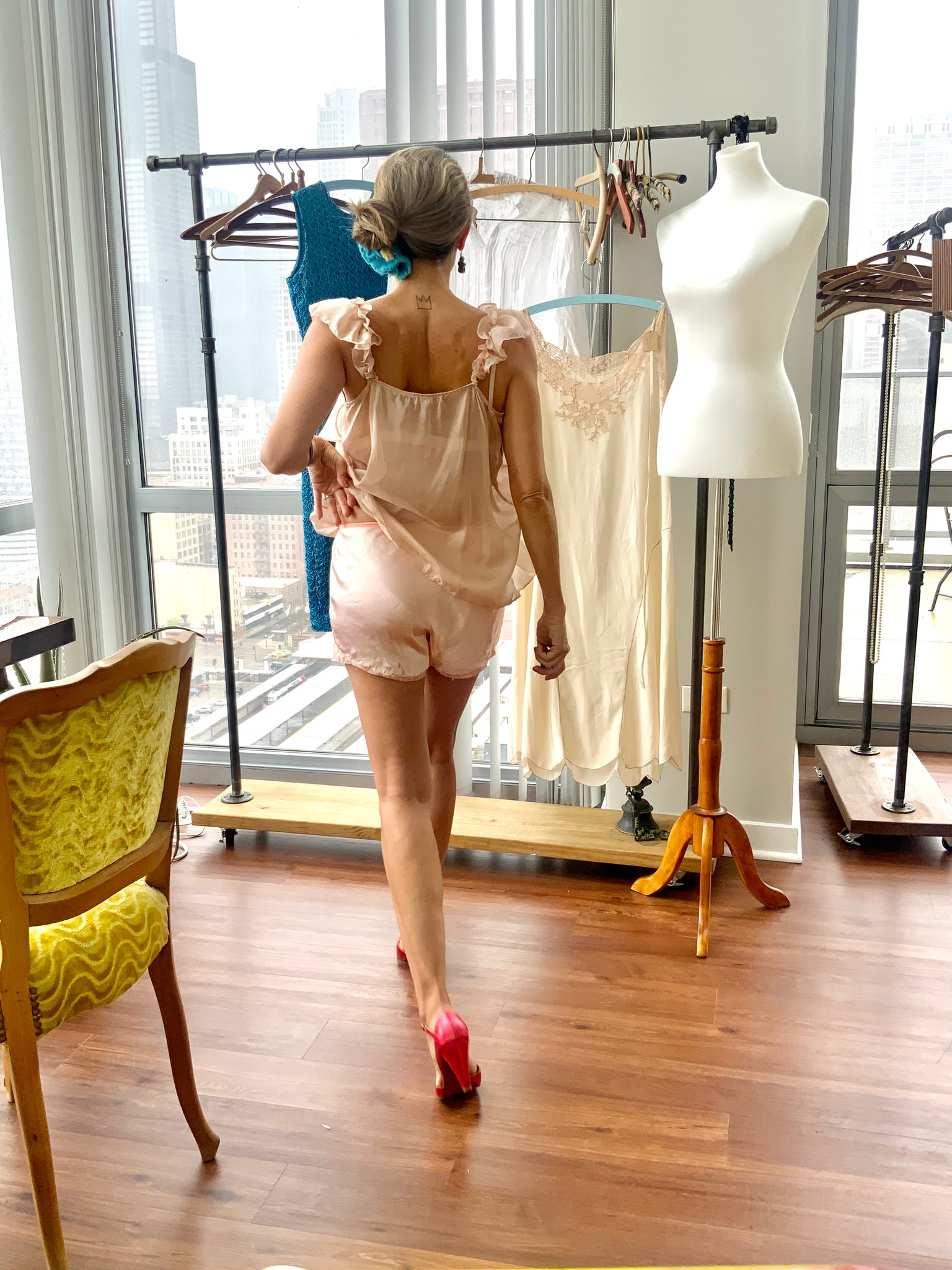 Beautiful 1940s Tap Pants. Satin. Peach. Lace embellishments. I changed the elastic in the waist because it was too stretched.