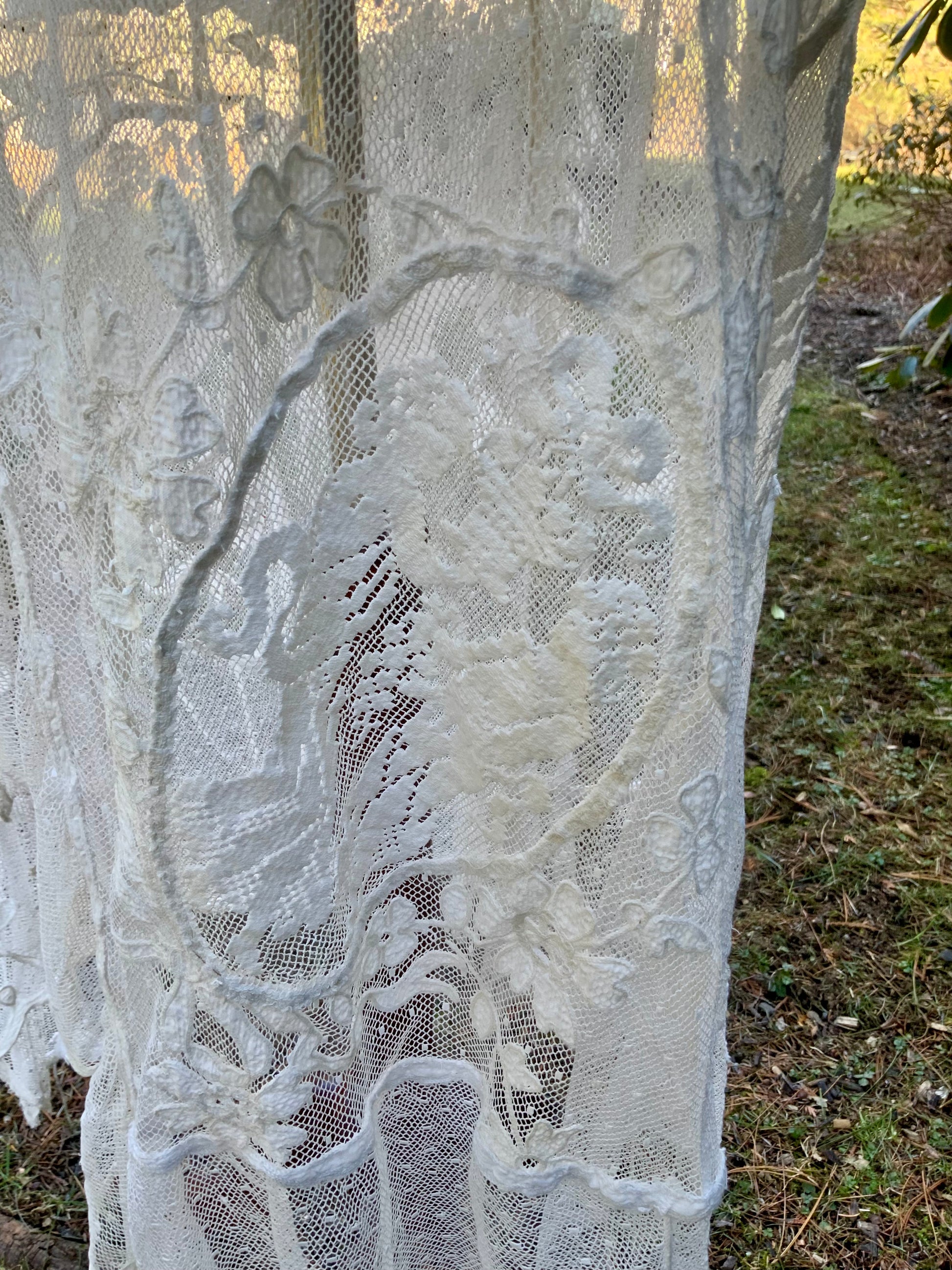 - Rare filet-style figural lace panel